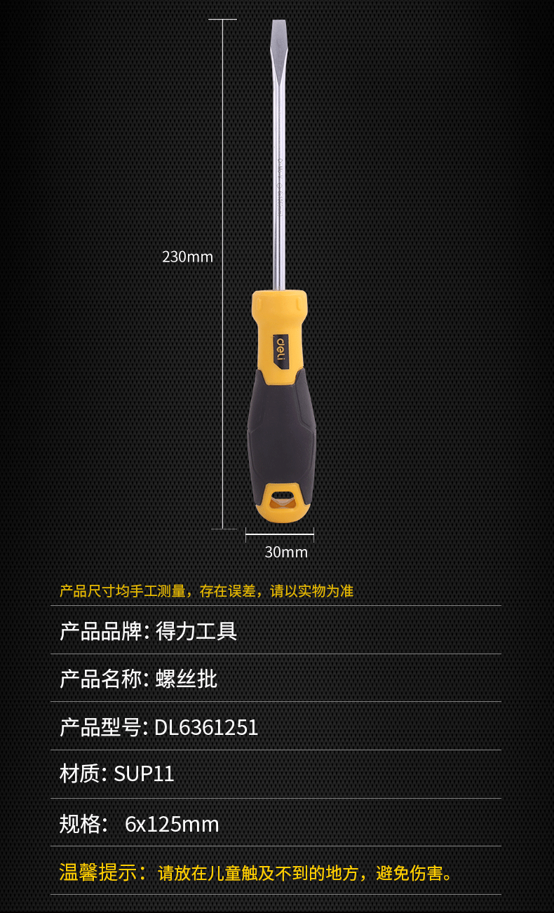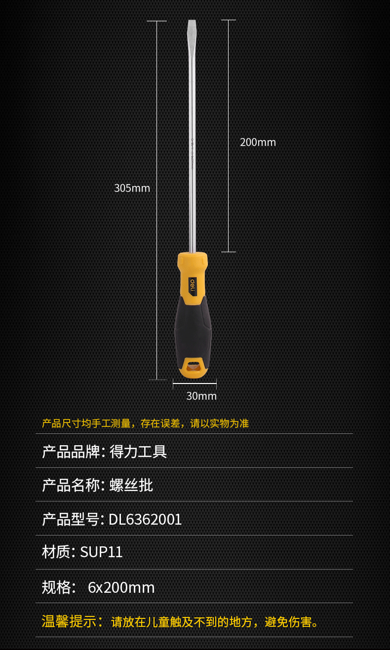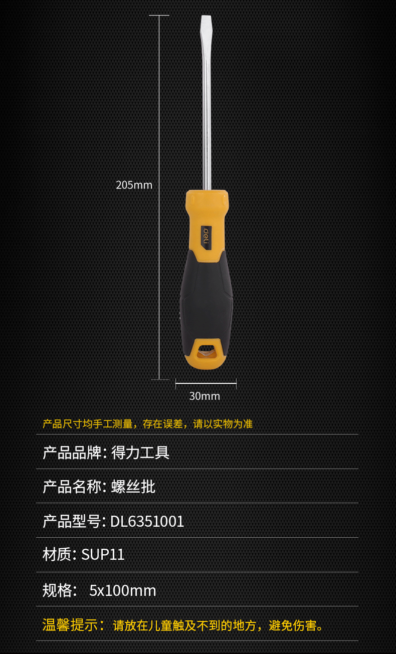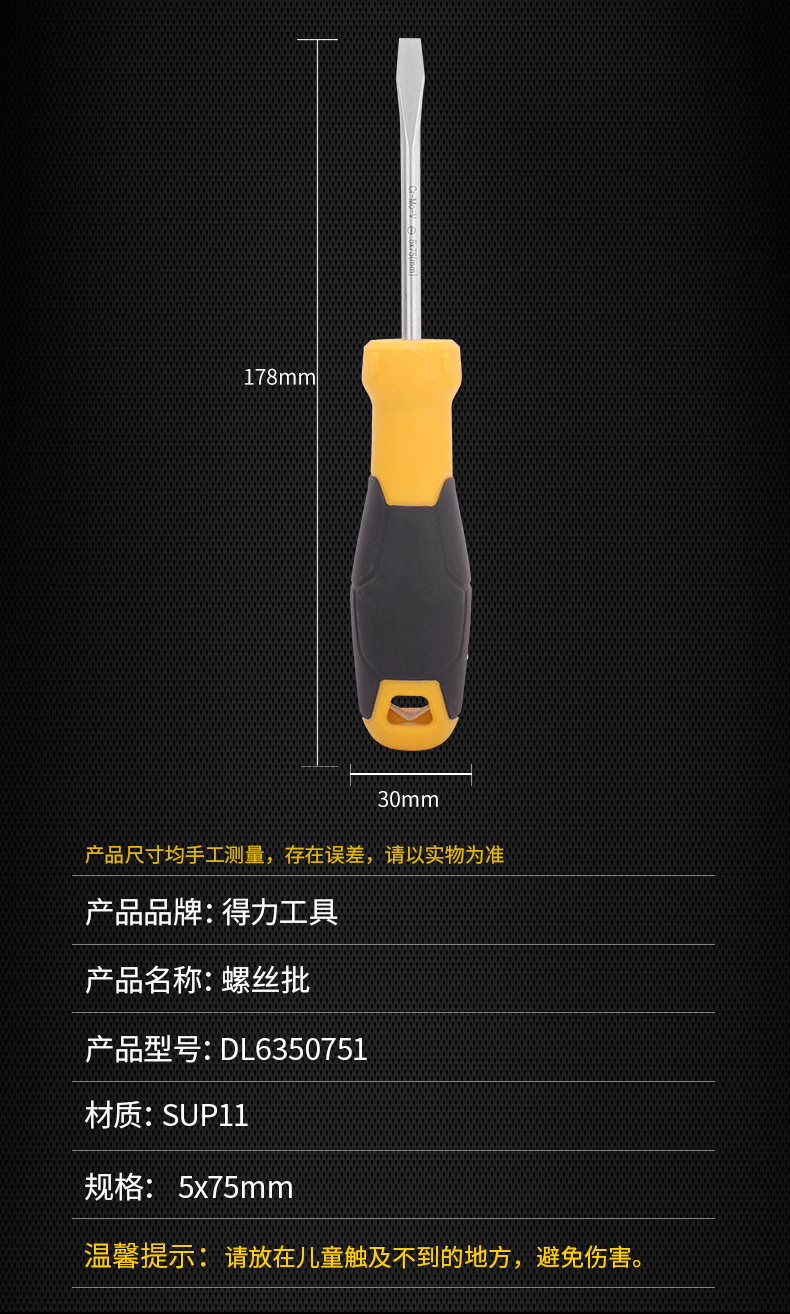 得力 鱼雷柄一字螺丝批 DL6382001 黄色 8*200mm 1把
