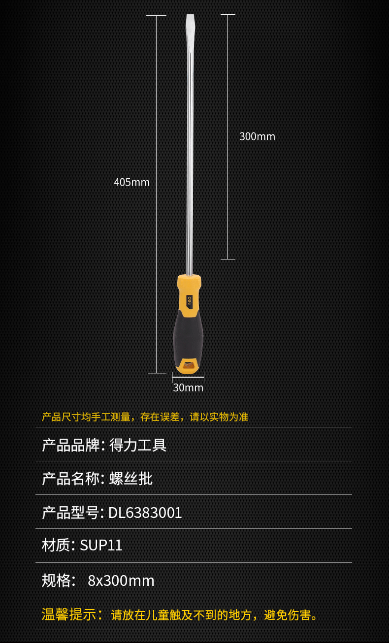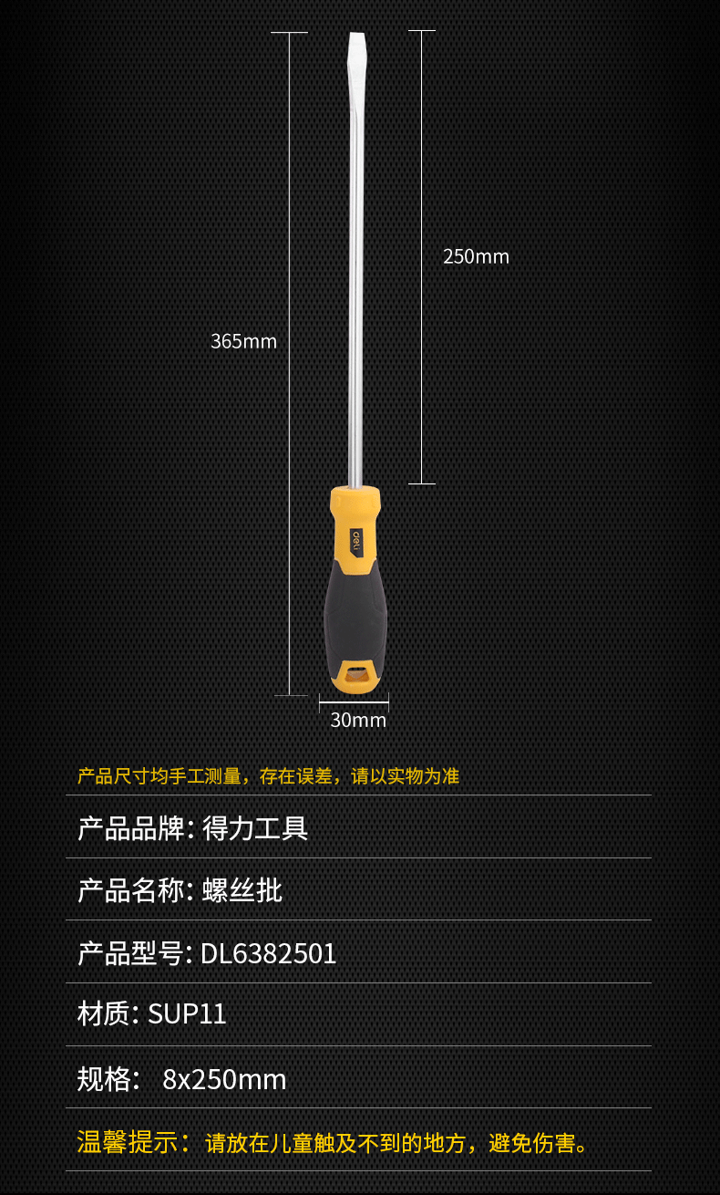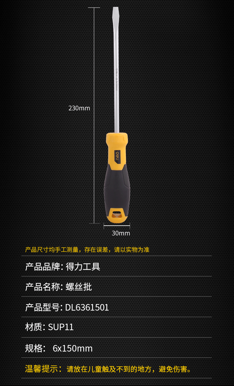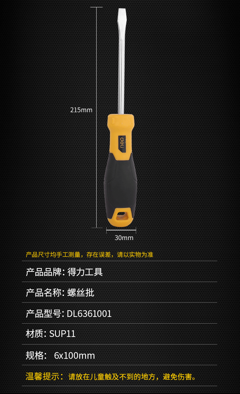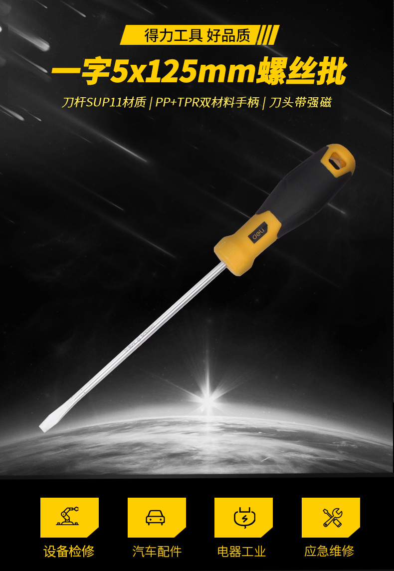 得力 鱼雷柄一字螺丝批 DL6382001 黄色 8*200mm 1把