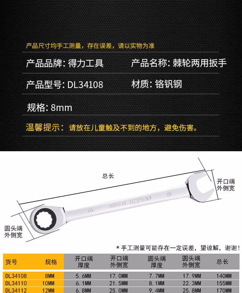 • 商品名称:得力工具 镜面两用棘轮快扳