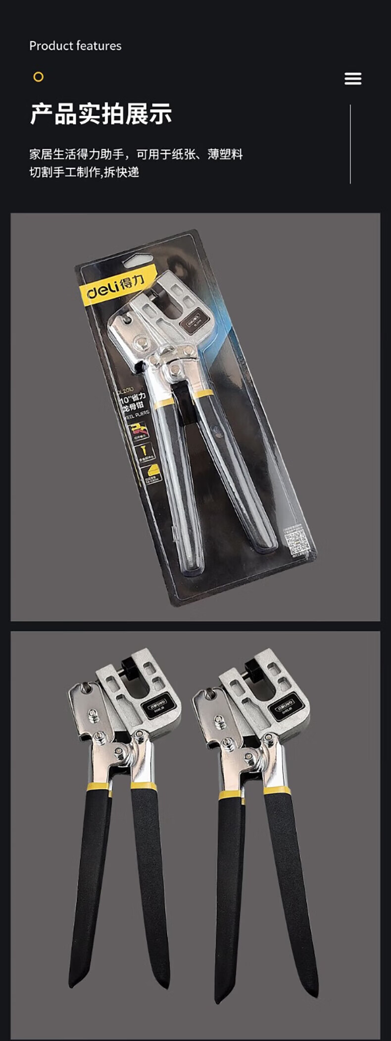 得力 省力型龙骨钳 DL2010 黄色 10寸 1把