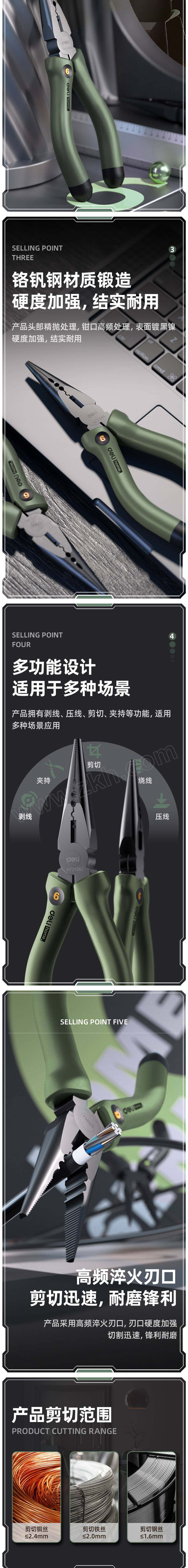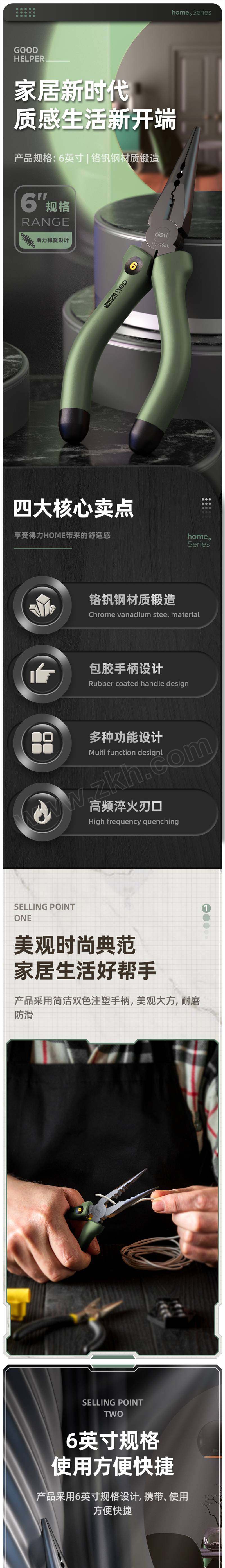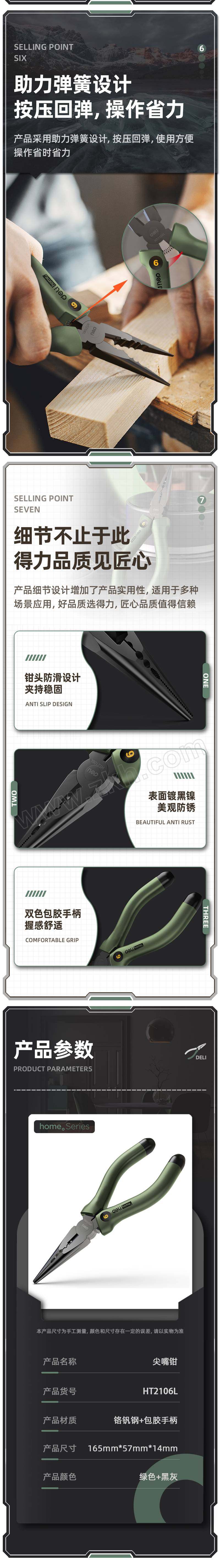 得力 home系列 尖嘴钳 HT2106L 绿色 6寸 1把