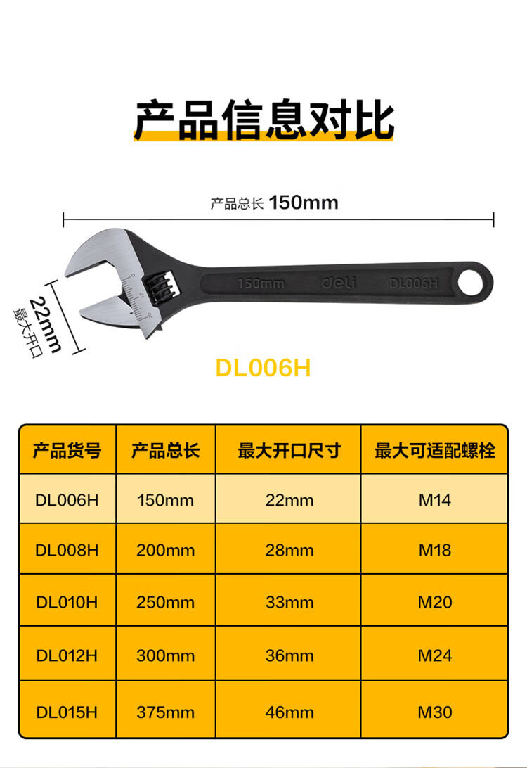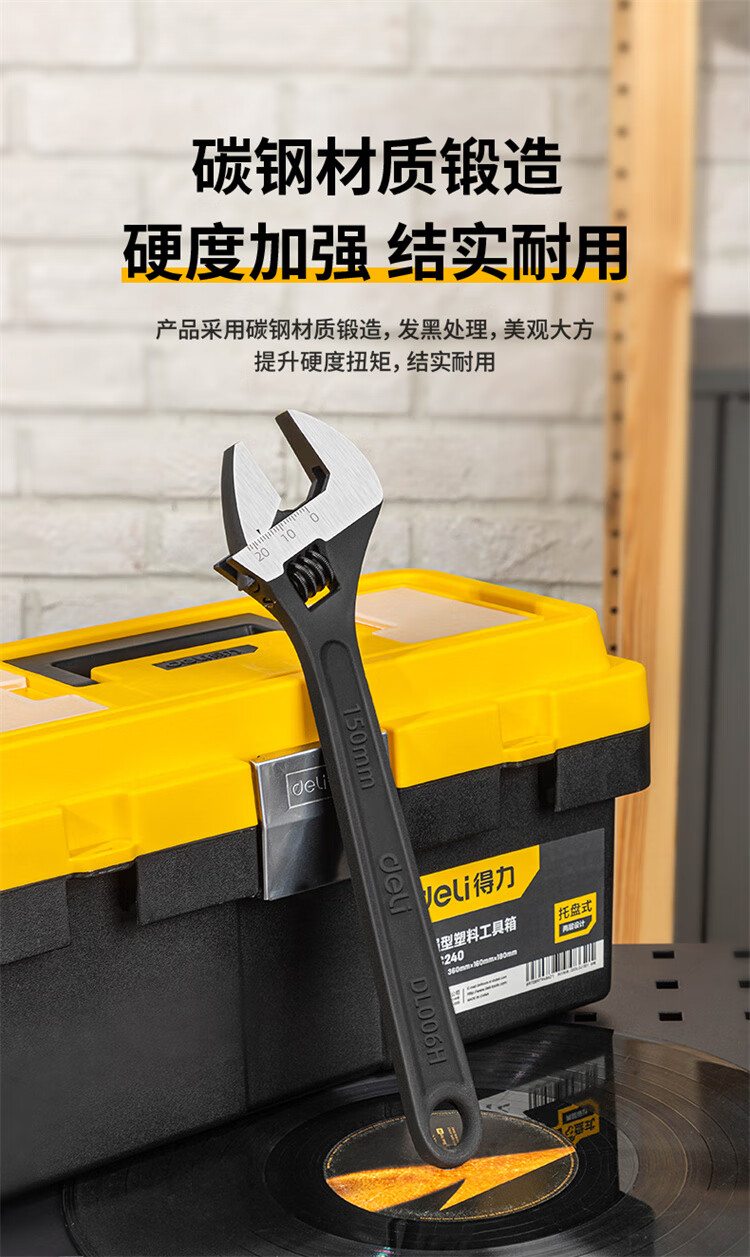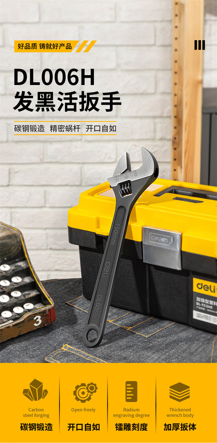 得力 发黑活扳手 DL006H 黑色 6寸 1把