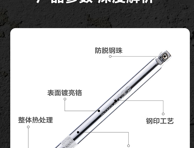 得力 棘轮扳手转向接杆 DQ2471 Cr-V铬钒钢 10寸 银色 1支