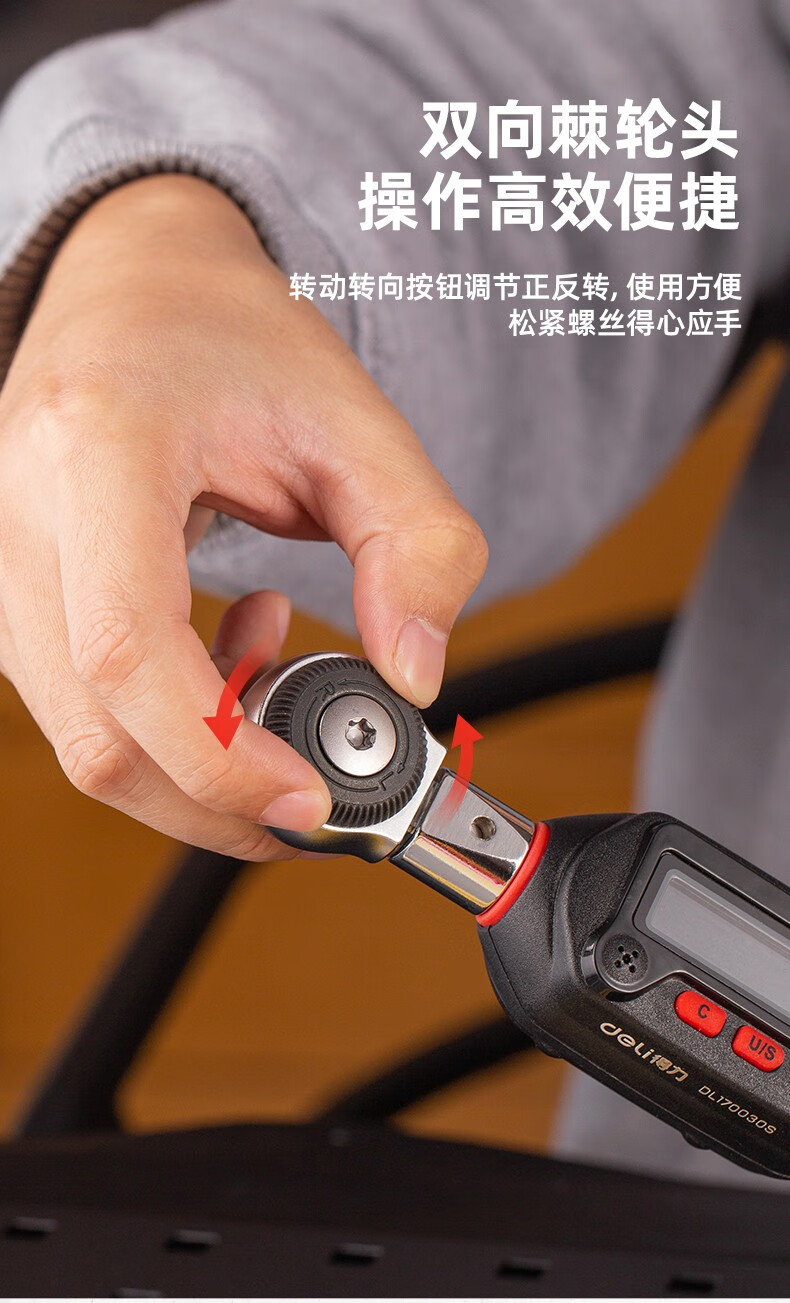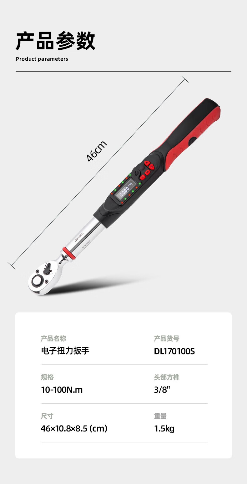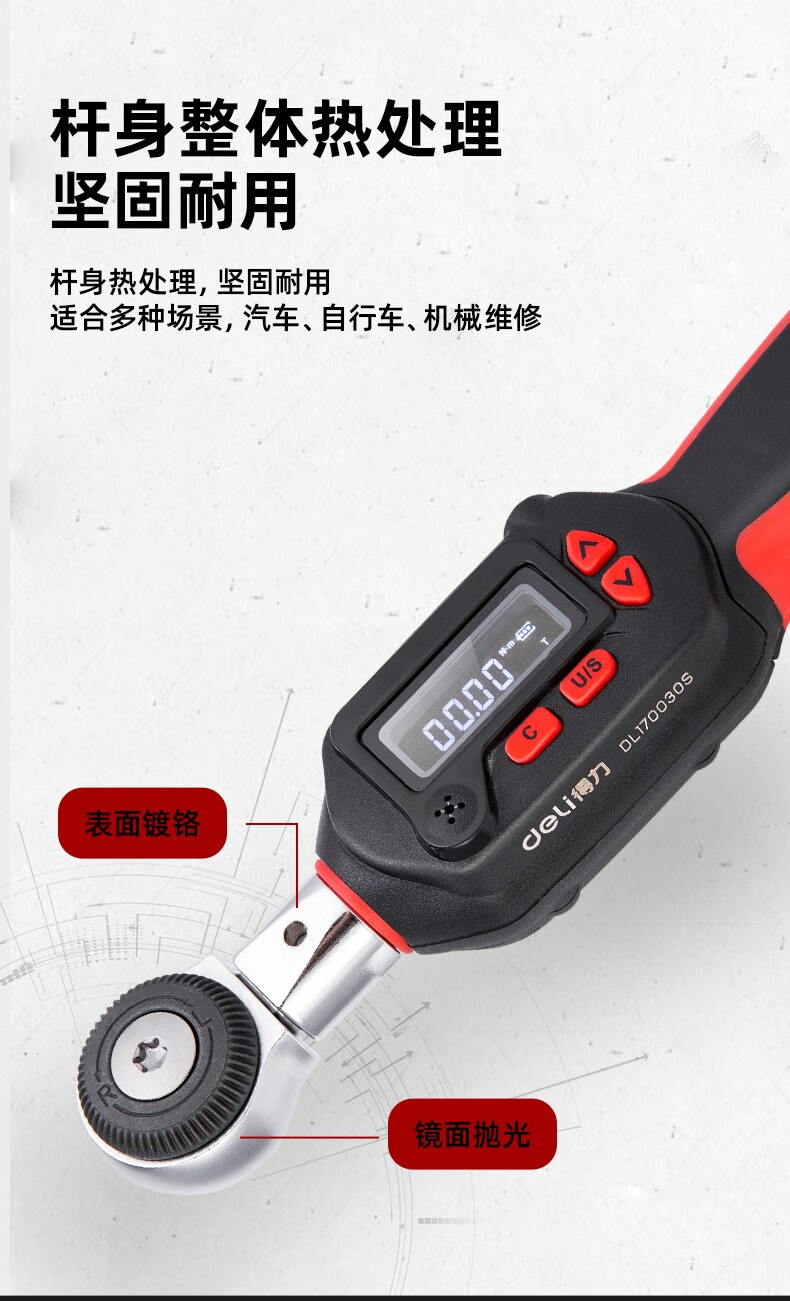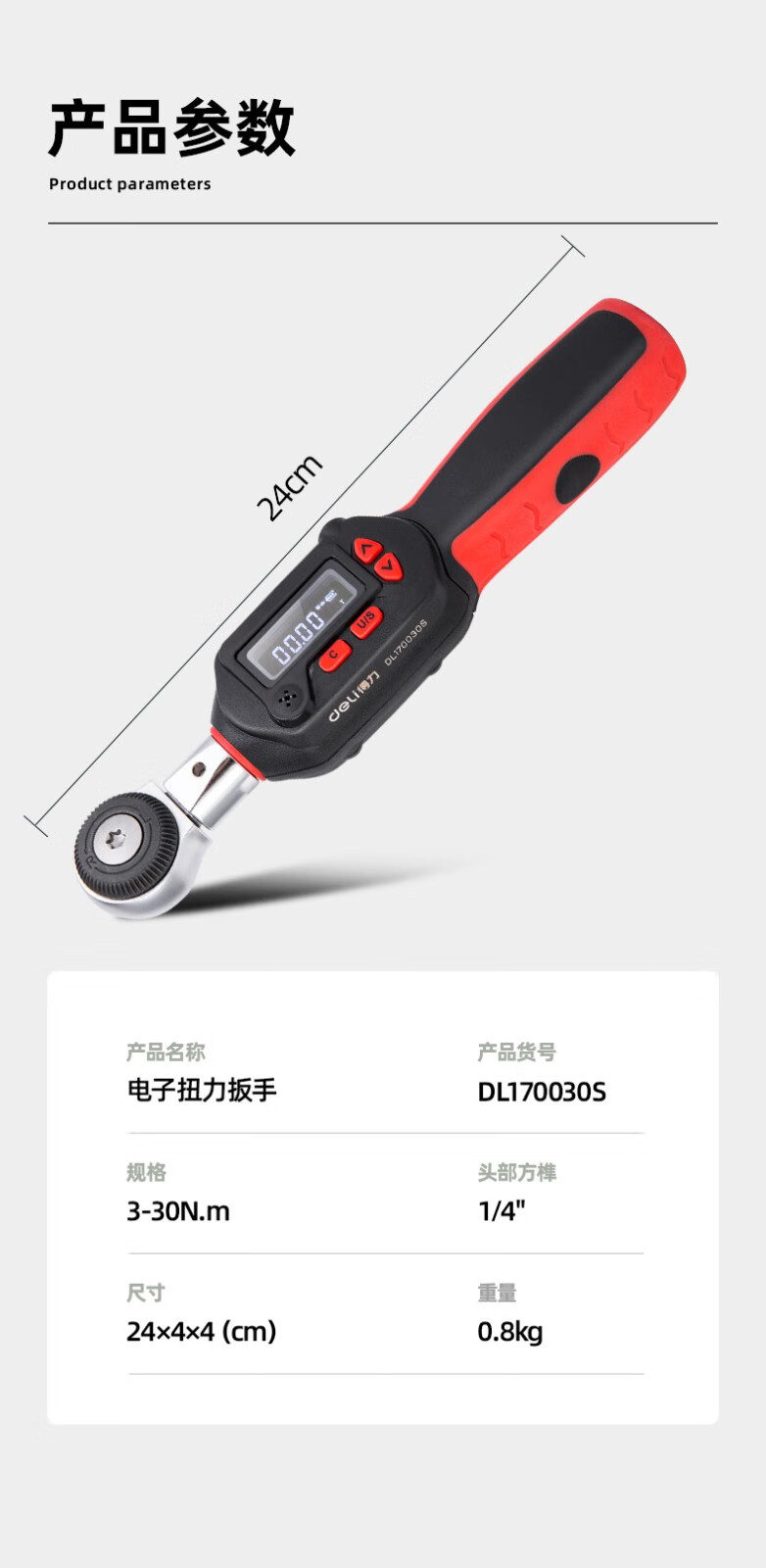 得力 电子扭力扳手 DL170030S 红色 1/4寸3-30N.m 1把
