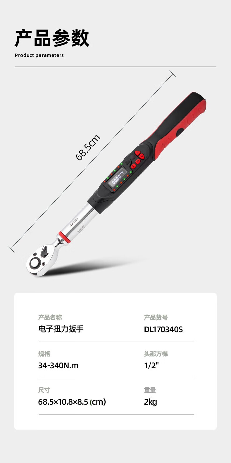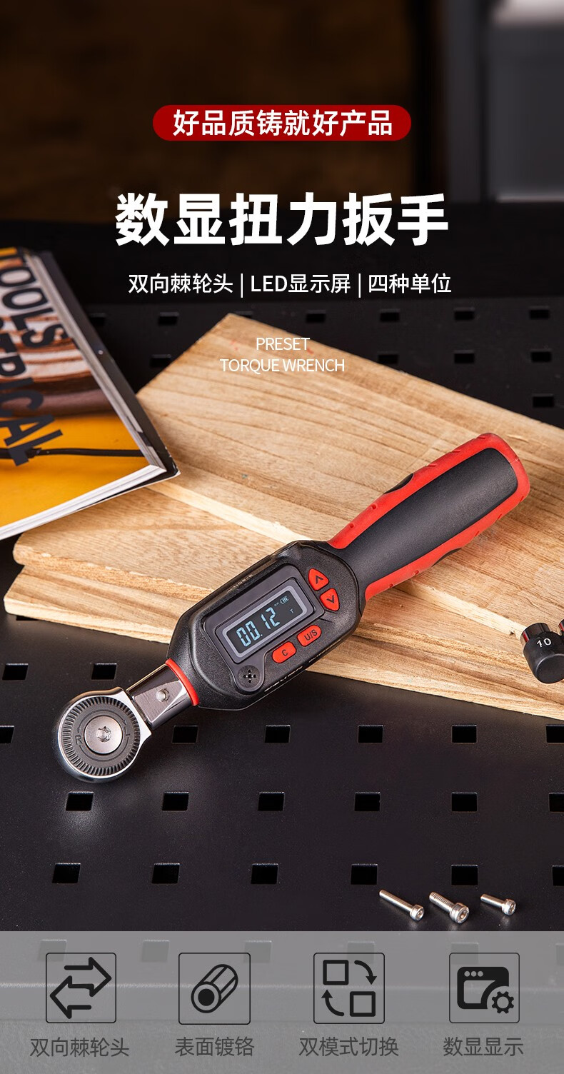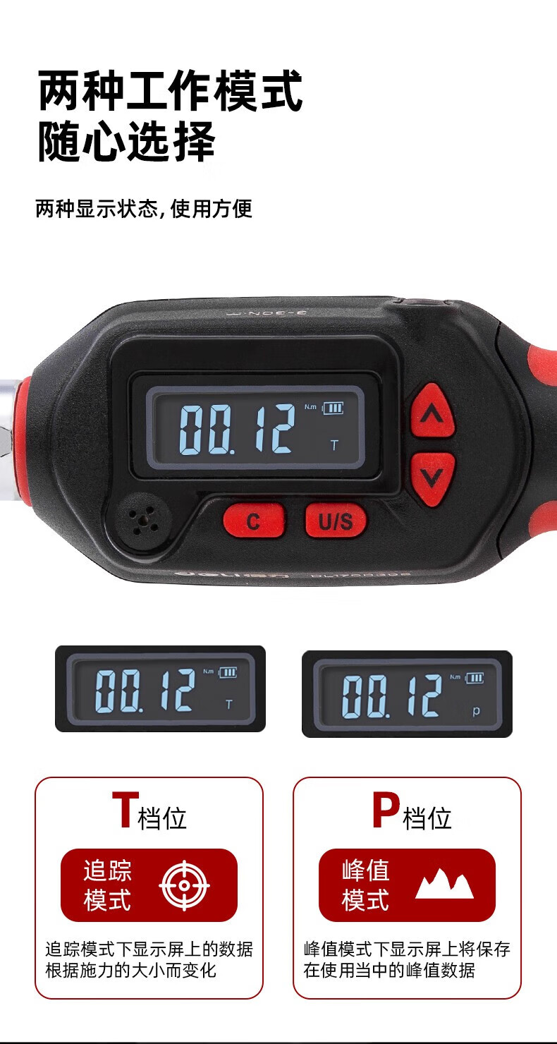 得力 电子扭力扳手 DL170030S 红色 1/4寸3-30N.m 1把