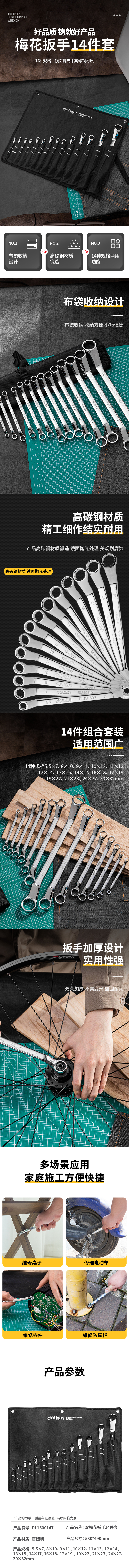 得力 镜面双梅花扳手套装 DL150014T 银色 高碳钢 14件 1套