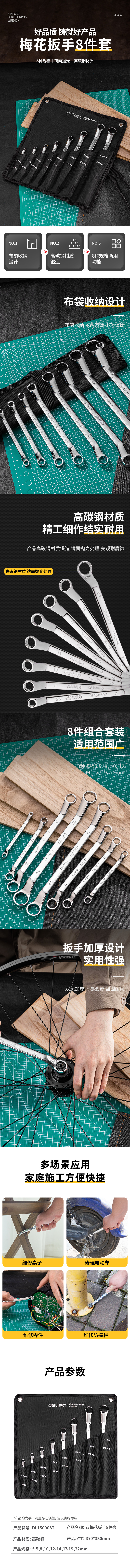 得力 镜面双梅花扳手套装 DL150008T 银色 高碳钢 8件 1套
