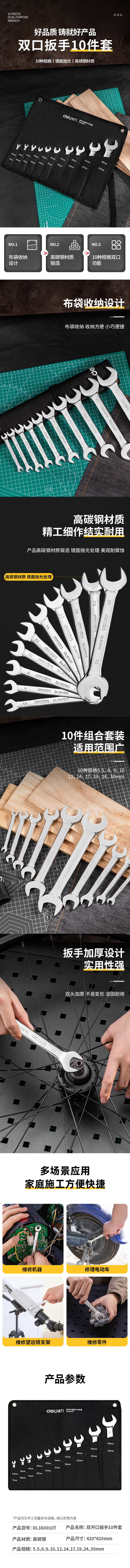 得力 镜面双开口扳手套装 DL160010T 银色 10件 1套