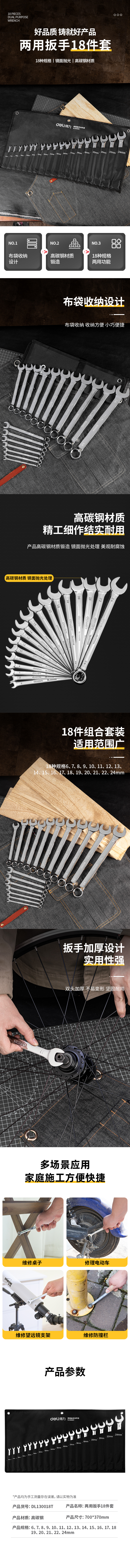 得力 镜面两用扳手套装 DL130018T 银色 18件 1套