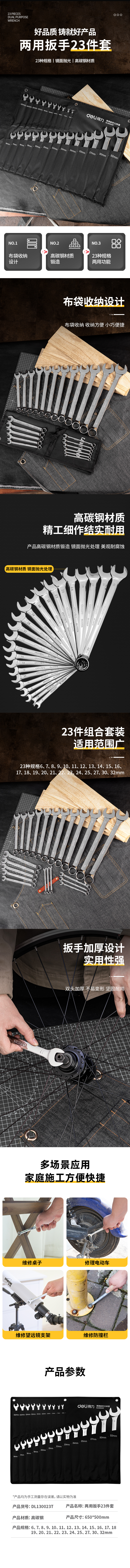 得力 镜面两用扳手套装 DL130023T 银色 23件 1套