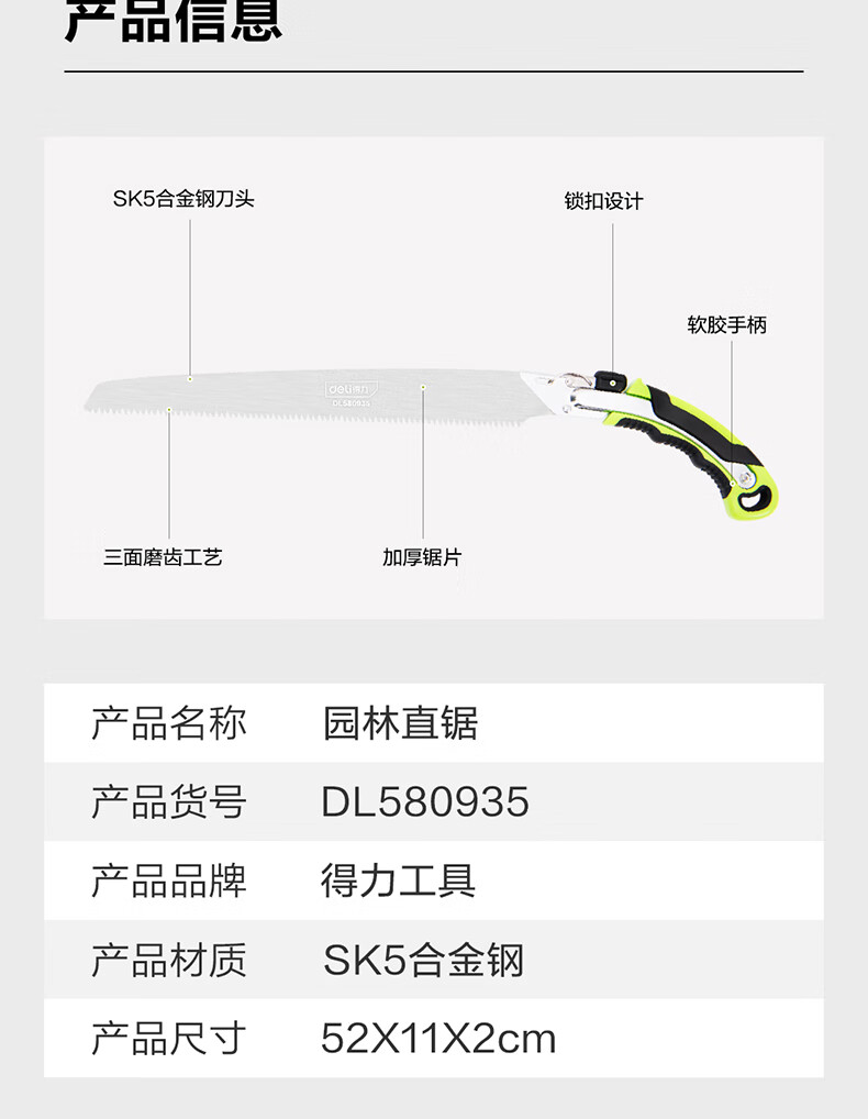 得力 园林锯 DL580935 绿色 可更换刀头 SK5 320mm 1把
