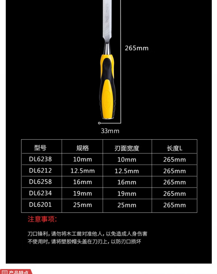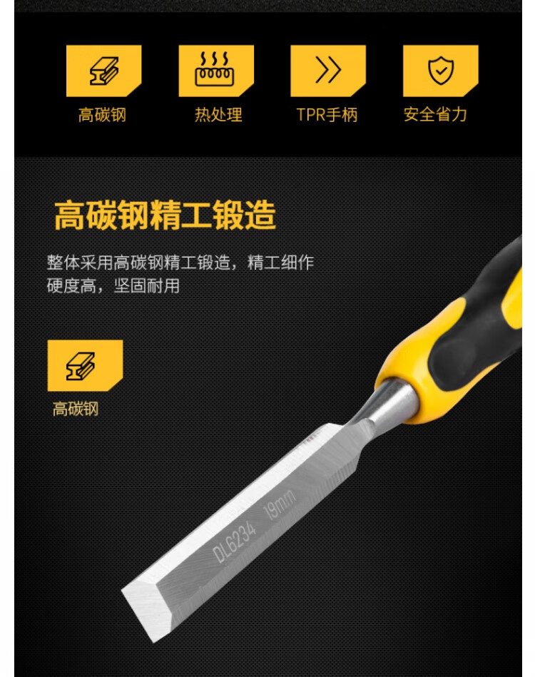 得力 塑柄木工凿 DL6201 黄色 25mm 1把