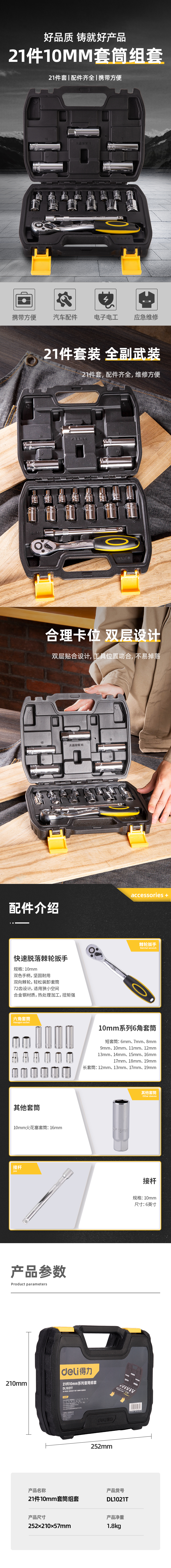 得力 10mm系列套筒组套 DL1021T 黑色 21件 1套