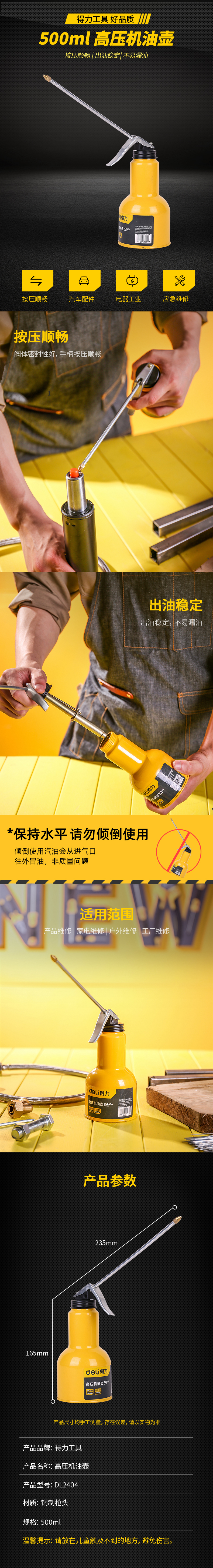 得力 高压金属机油壶 DL2404 黄色 500ml 1个