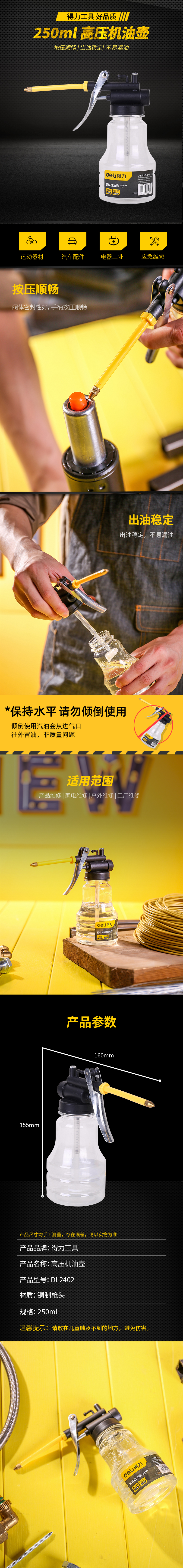 得力 透明塑料机油壶 DL2402 黄色 250ml 1个
