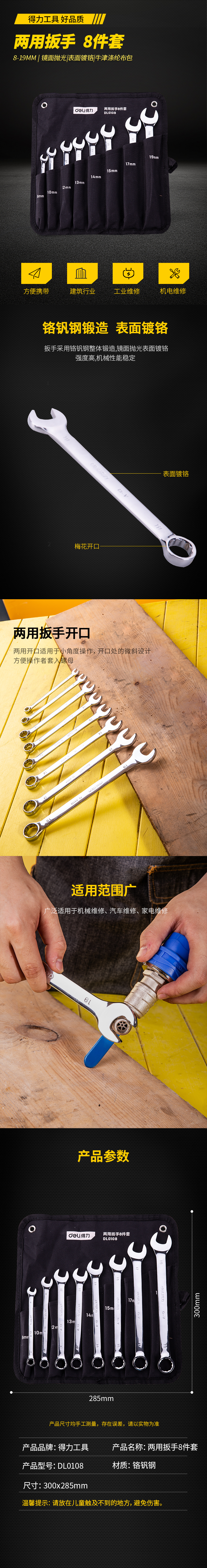 得力 镜面两用扳手套装 DL0108 银色 8-19mm 8件 1套