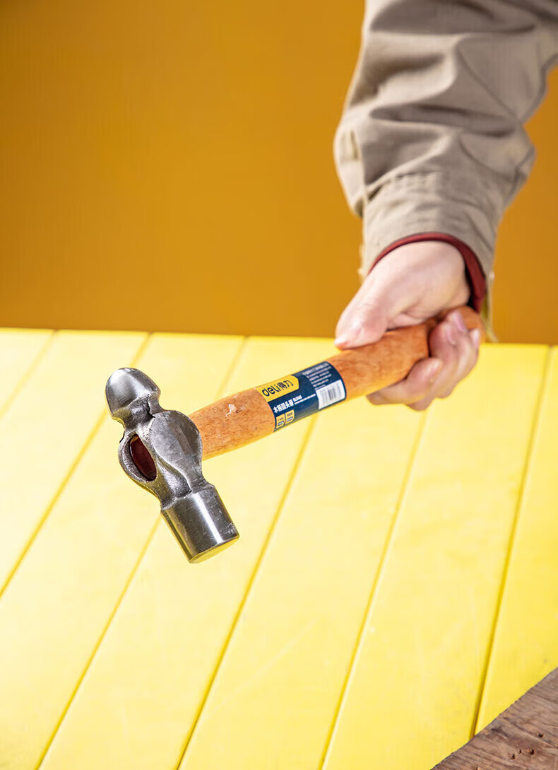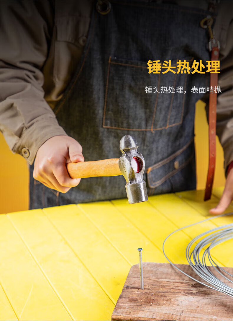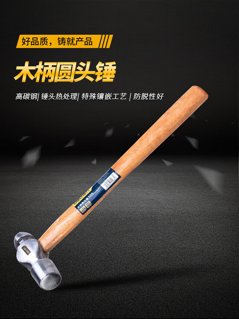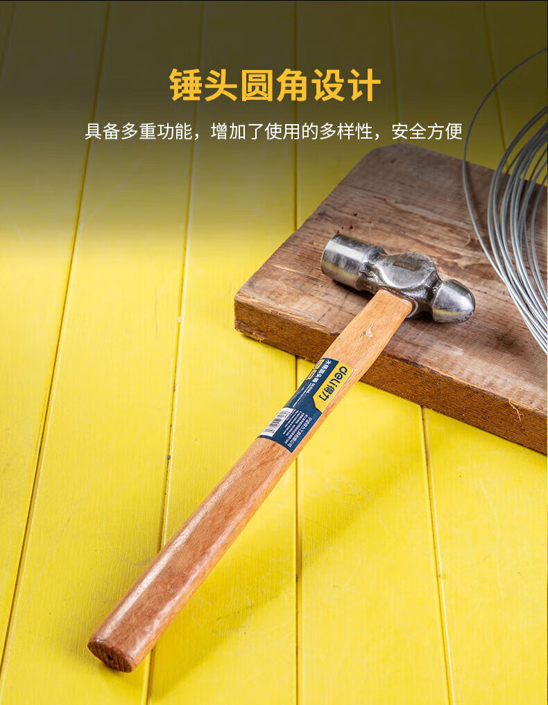 得力 木柄圆头锤 DL5168 银色 高碳钢 1.5lb 1把