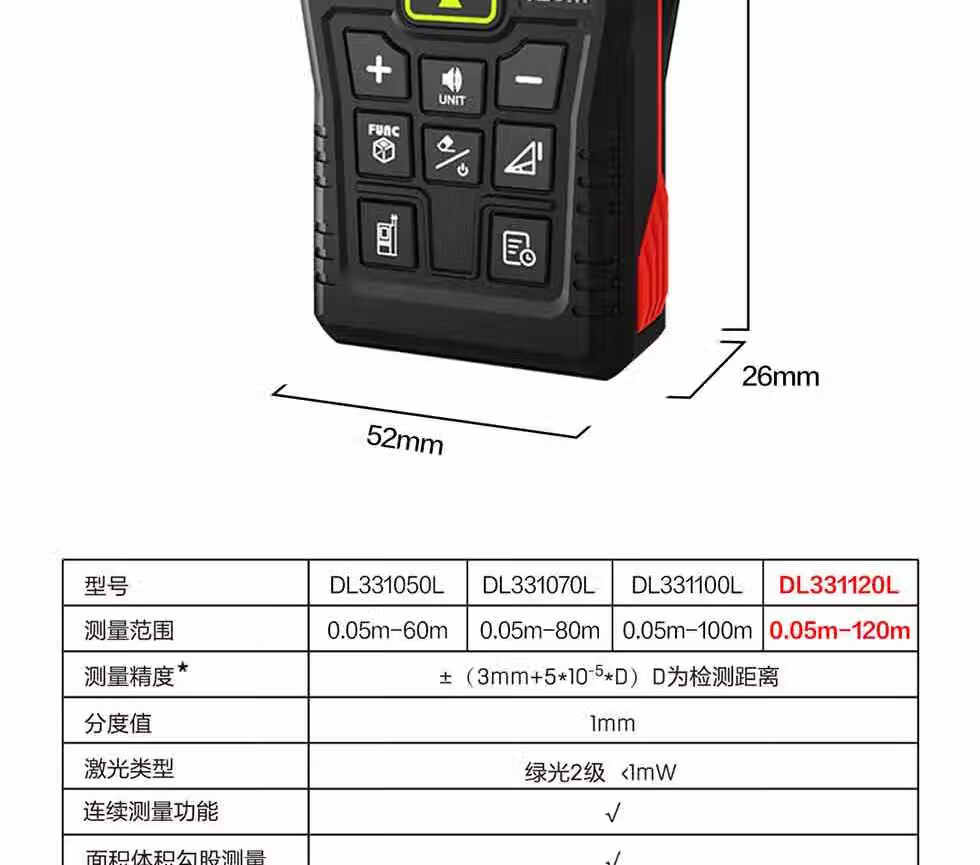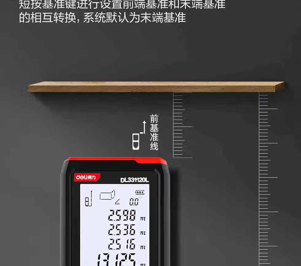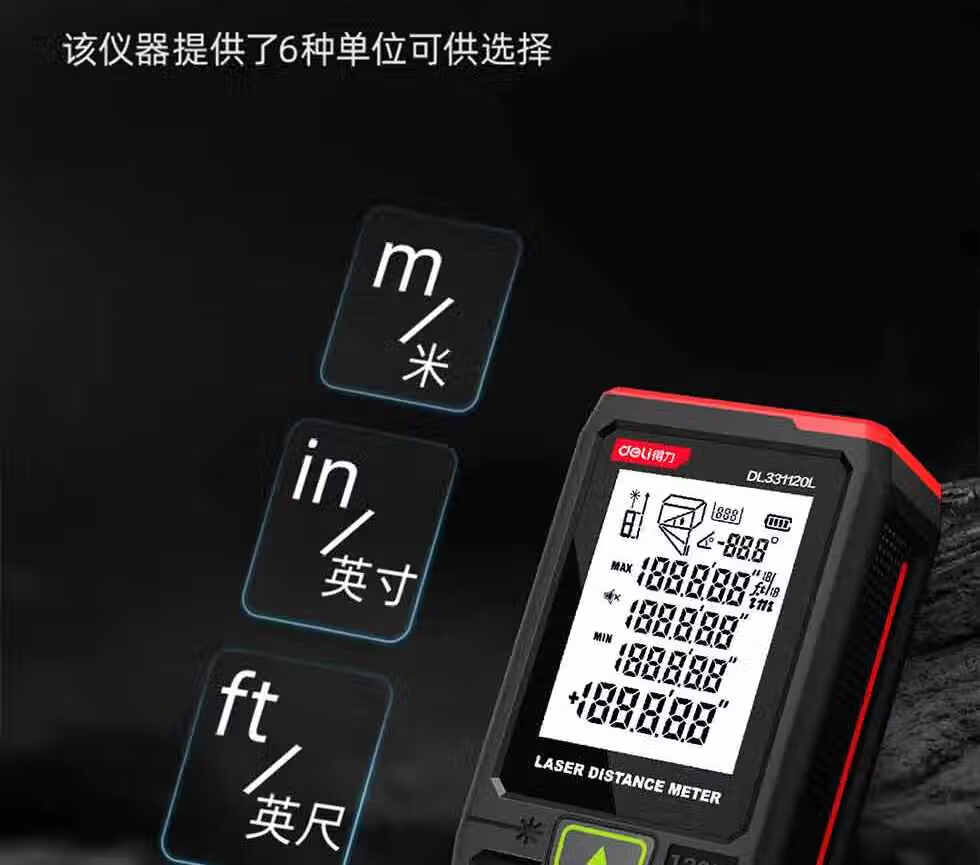 得力 激光测距仪 DL331120L 120m 绿光语音锂电 红色 1台