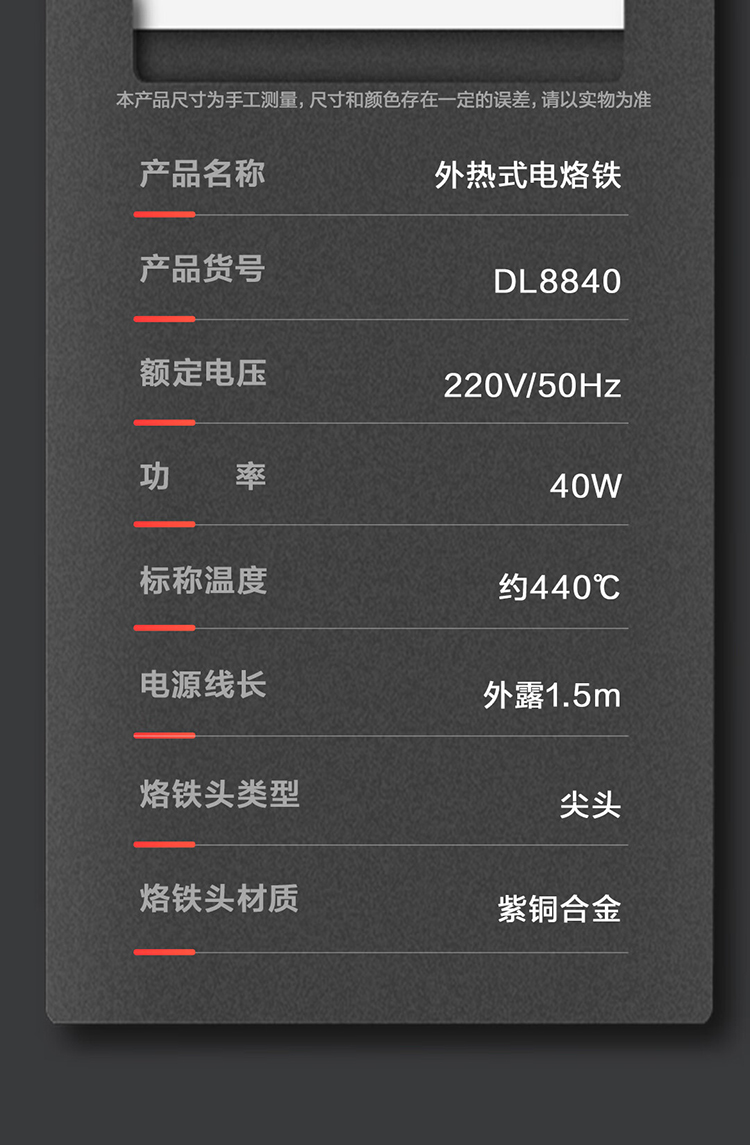 得力 外热式调温电烙铁 DL8840 黑色 40W尖头 1把