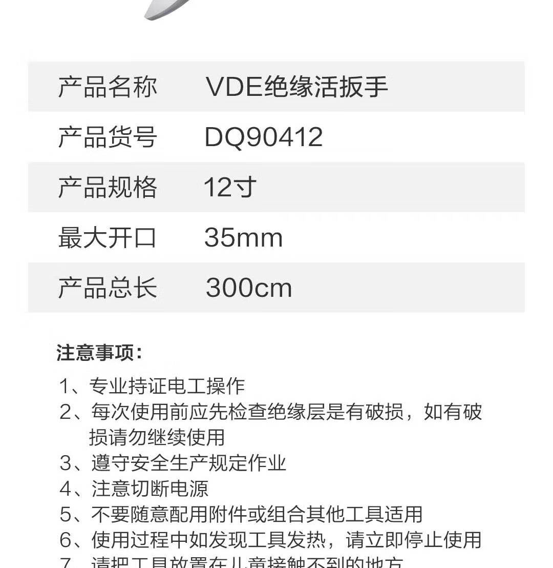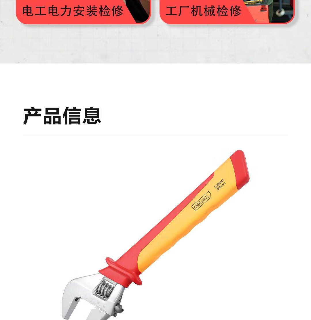 得力 绝缘活动扳手 DQ90412 红色 12寸 1把