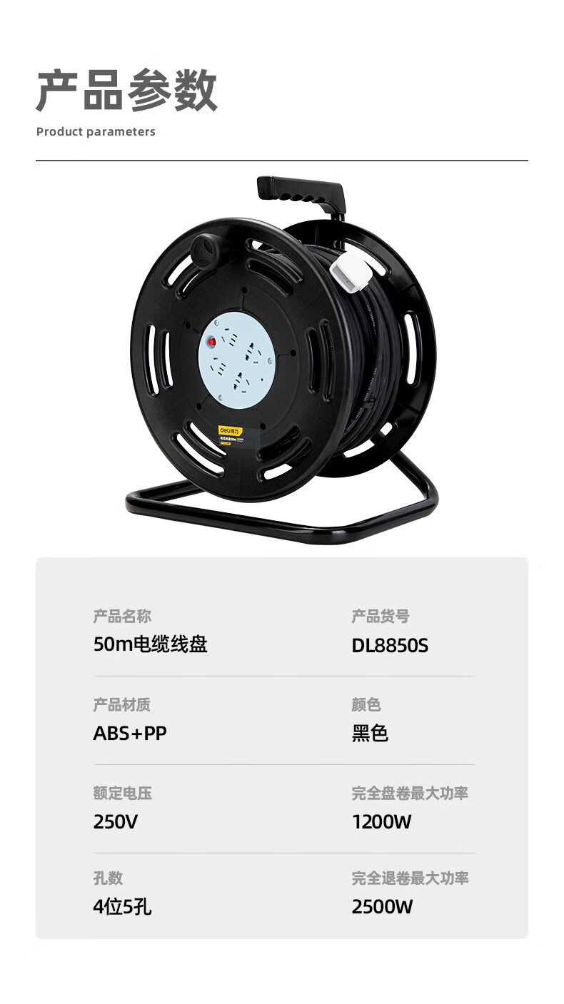 得力 电缆线盘 DL8850S 1.5线径 黑色 50m 1台