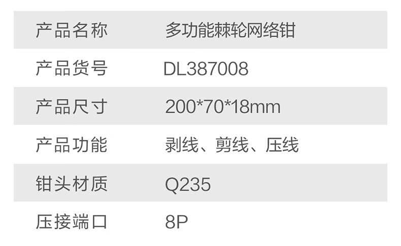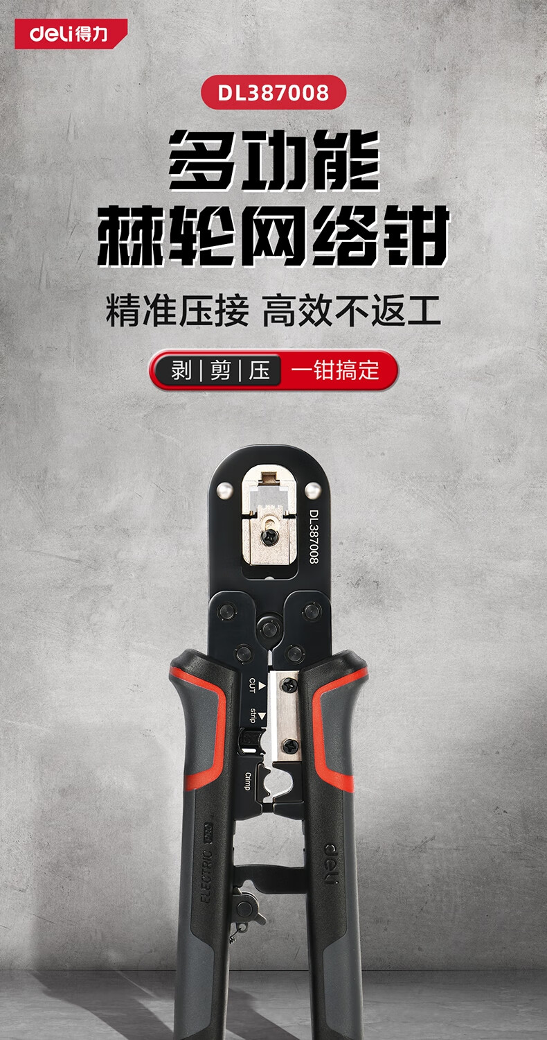 得力 网络钳 DL387008 红色 TPE手柄 8P 1把