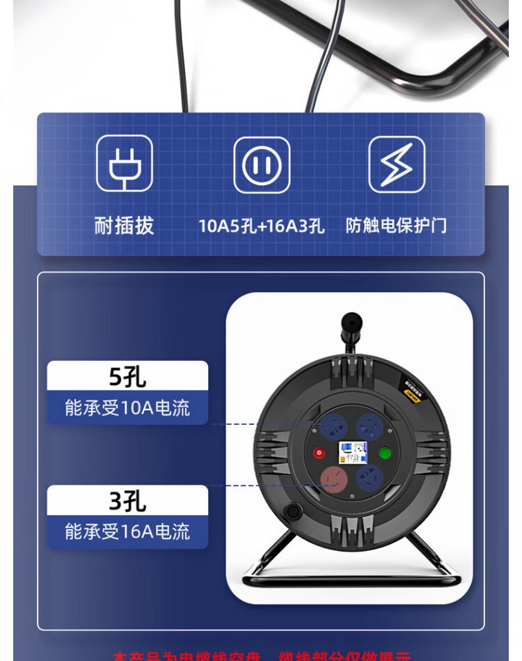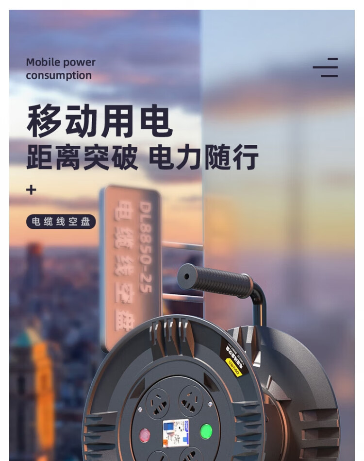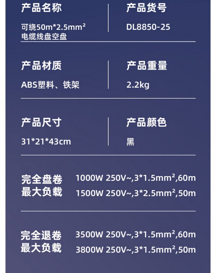 得力 电缆线盘 DL8850S-25 2.5线径 黑色 50m 1台