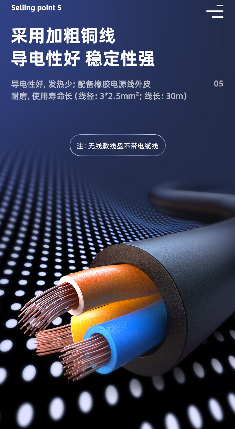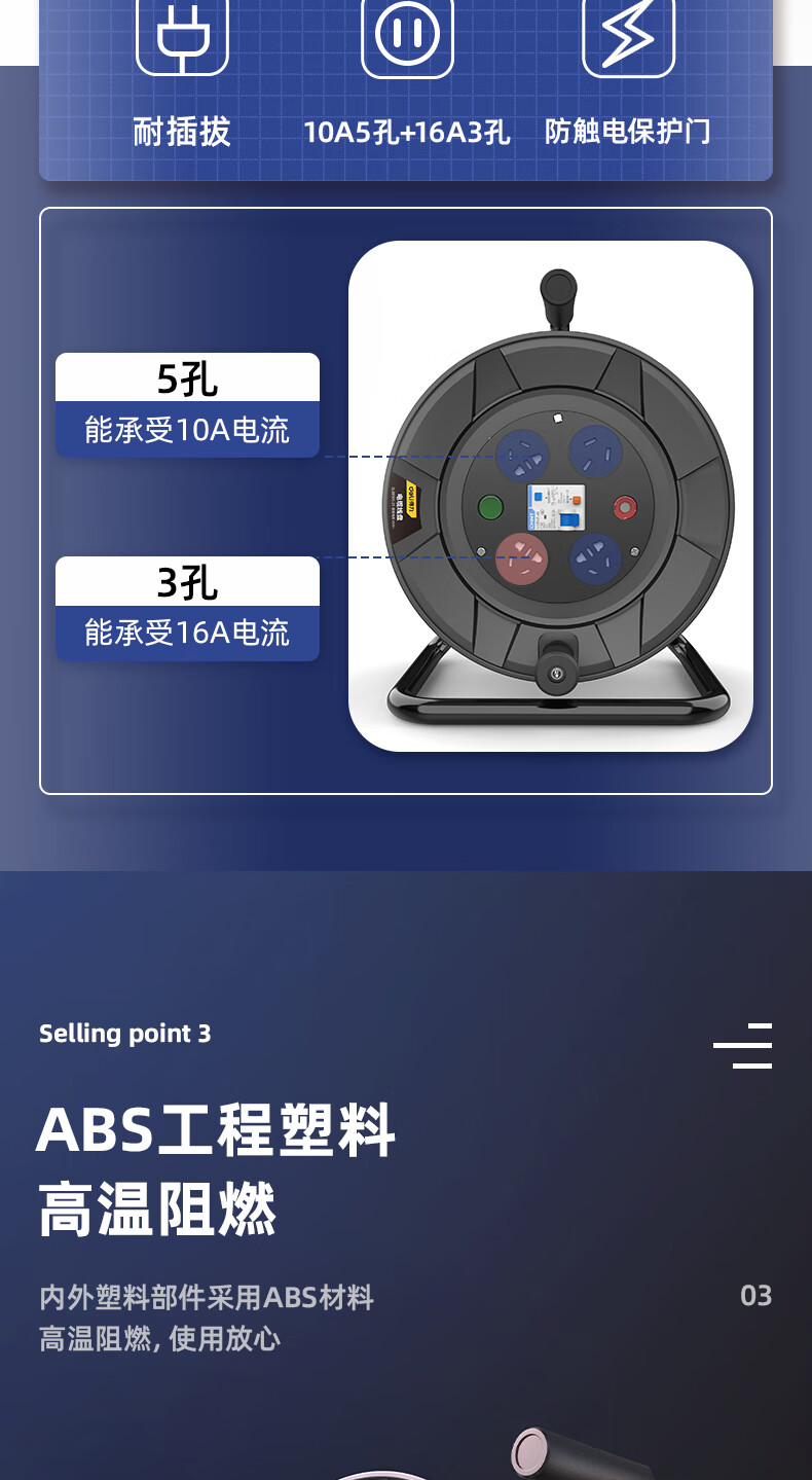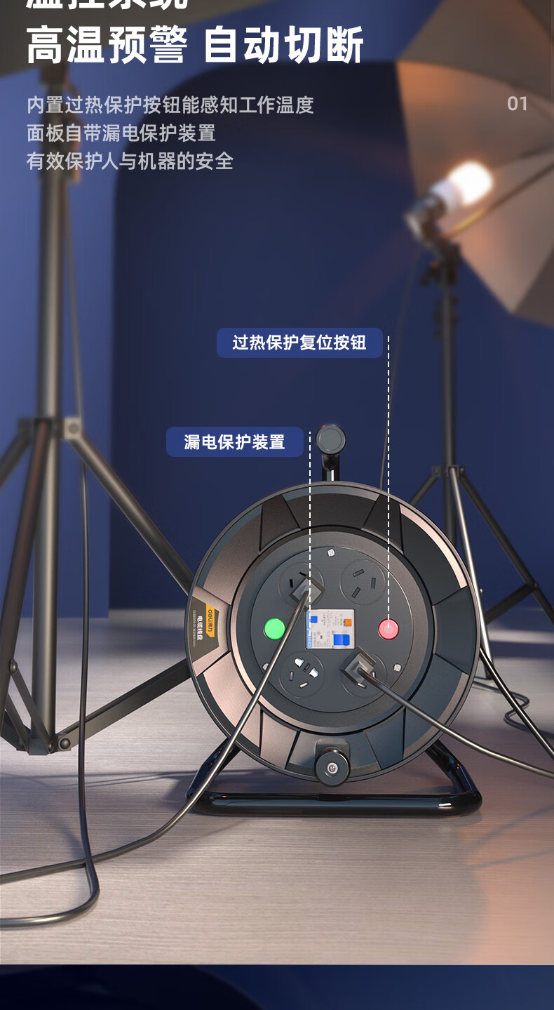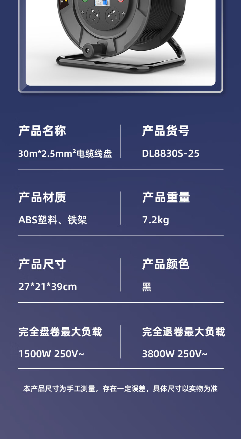 得力 电缆线盘 DL8830S-25 2.5线径 黑色 30m 1台