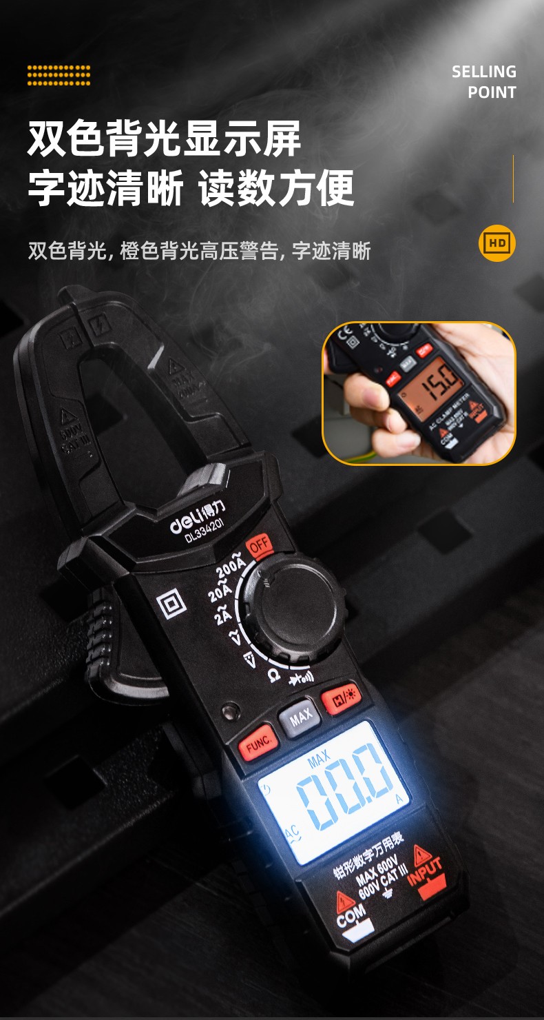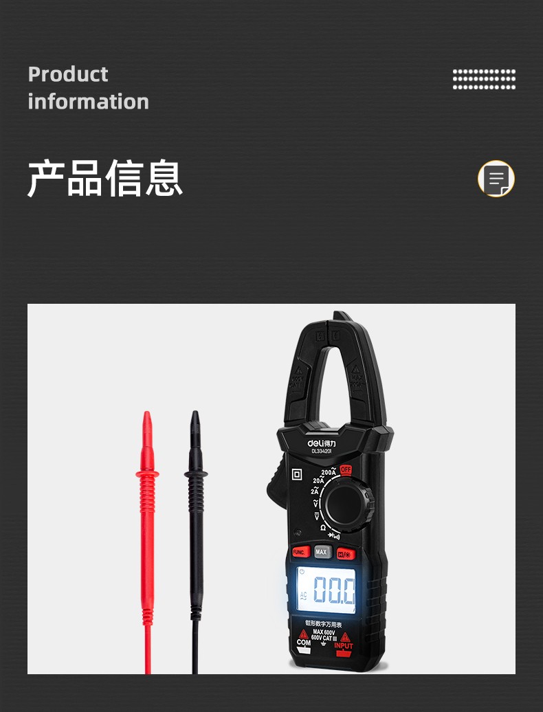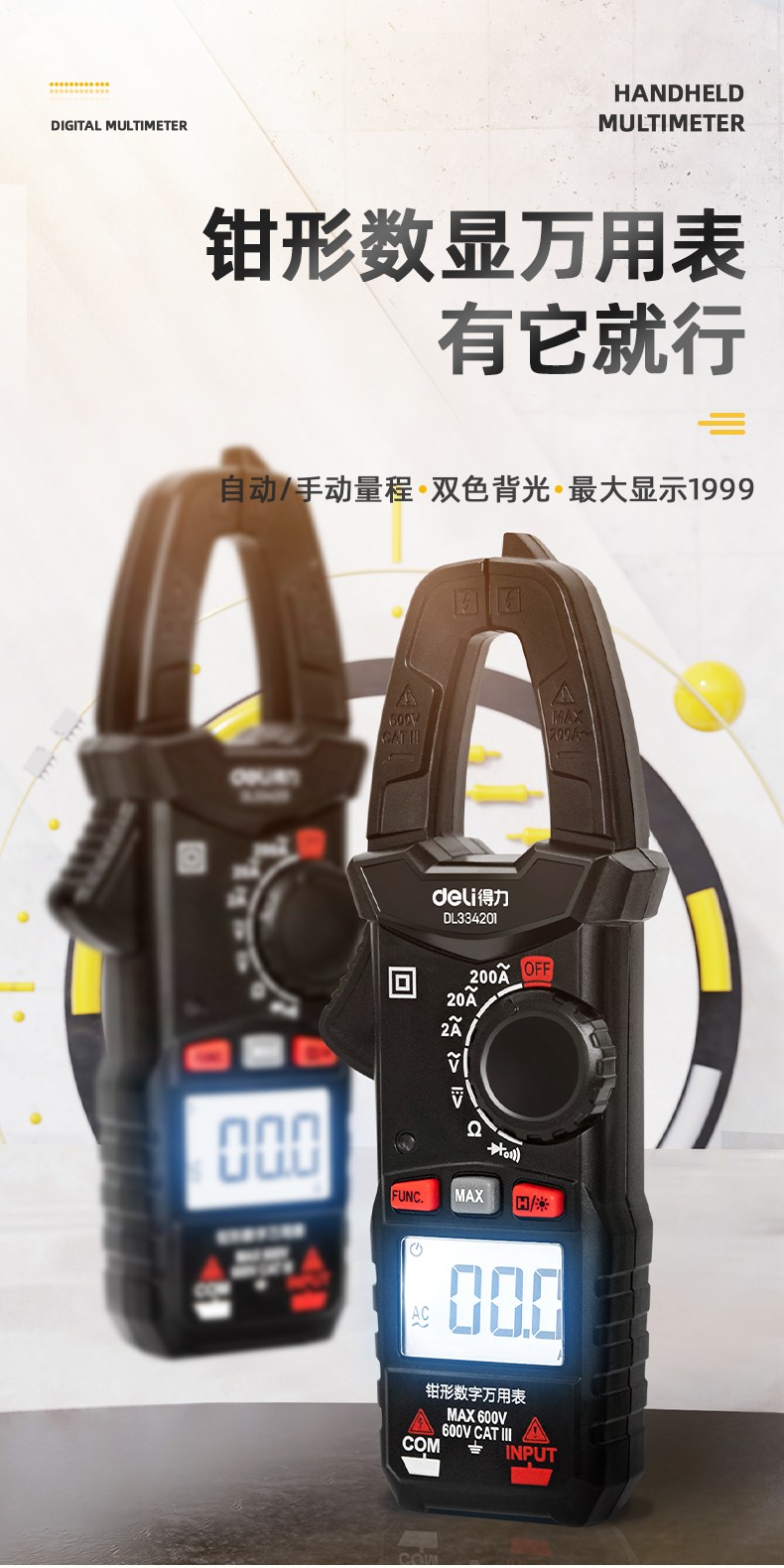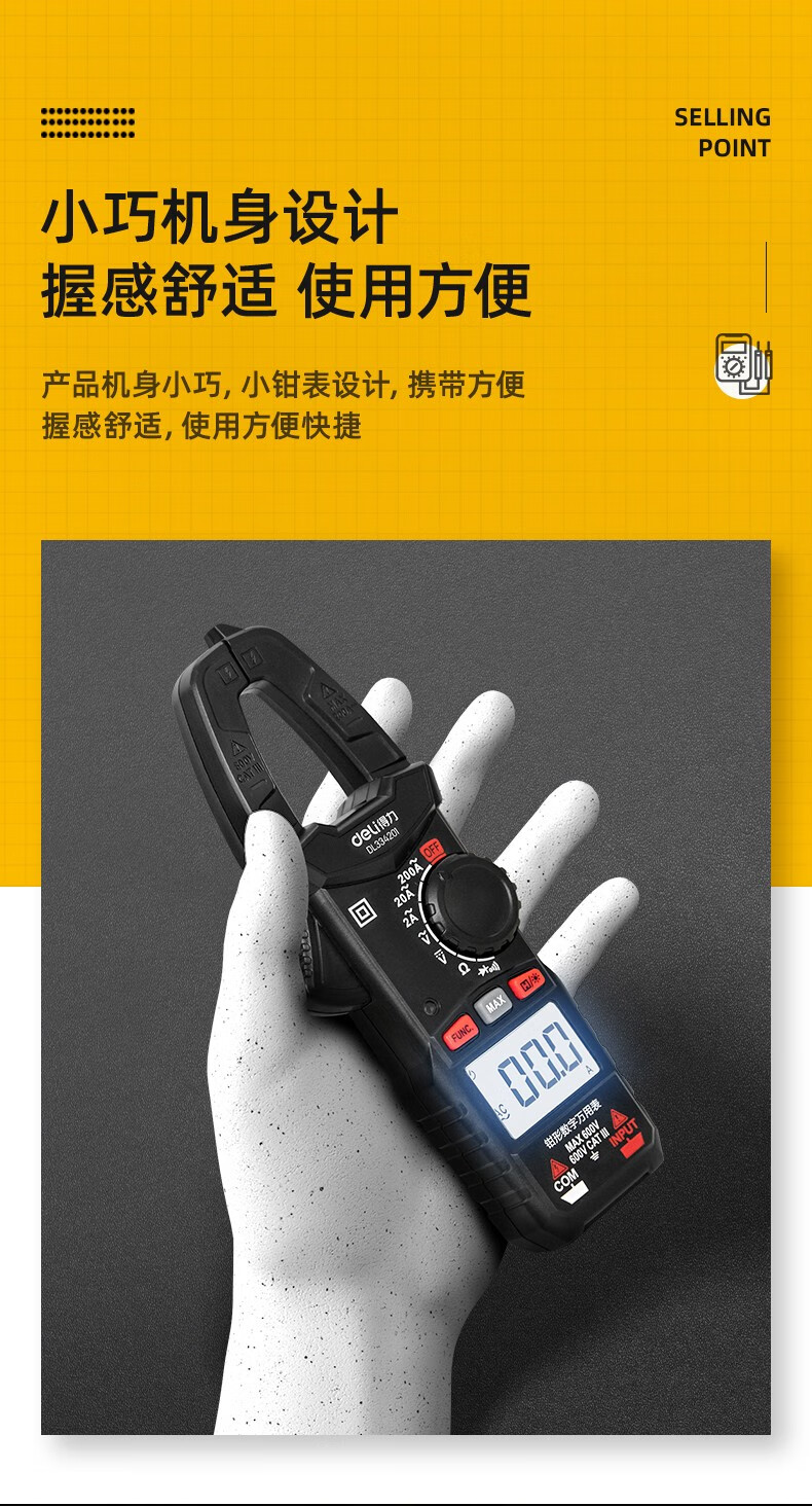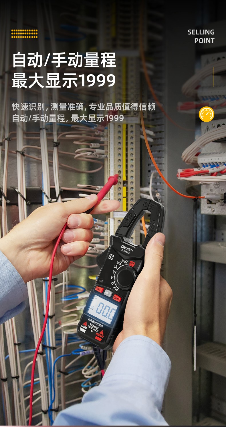 得力 钳形万用表 DL334203 3999位 电容测试 1台