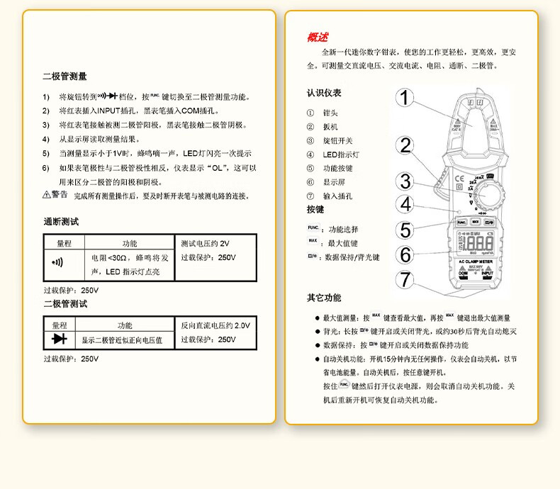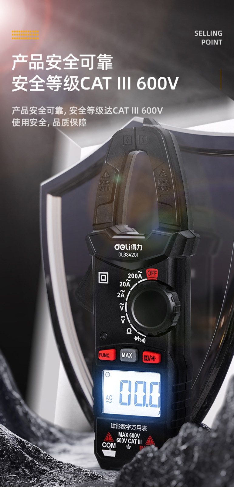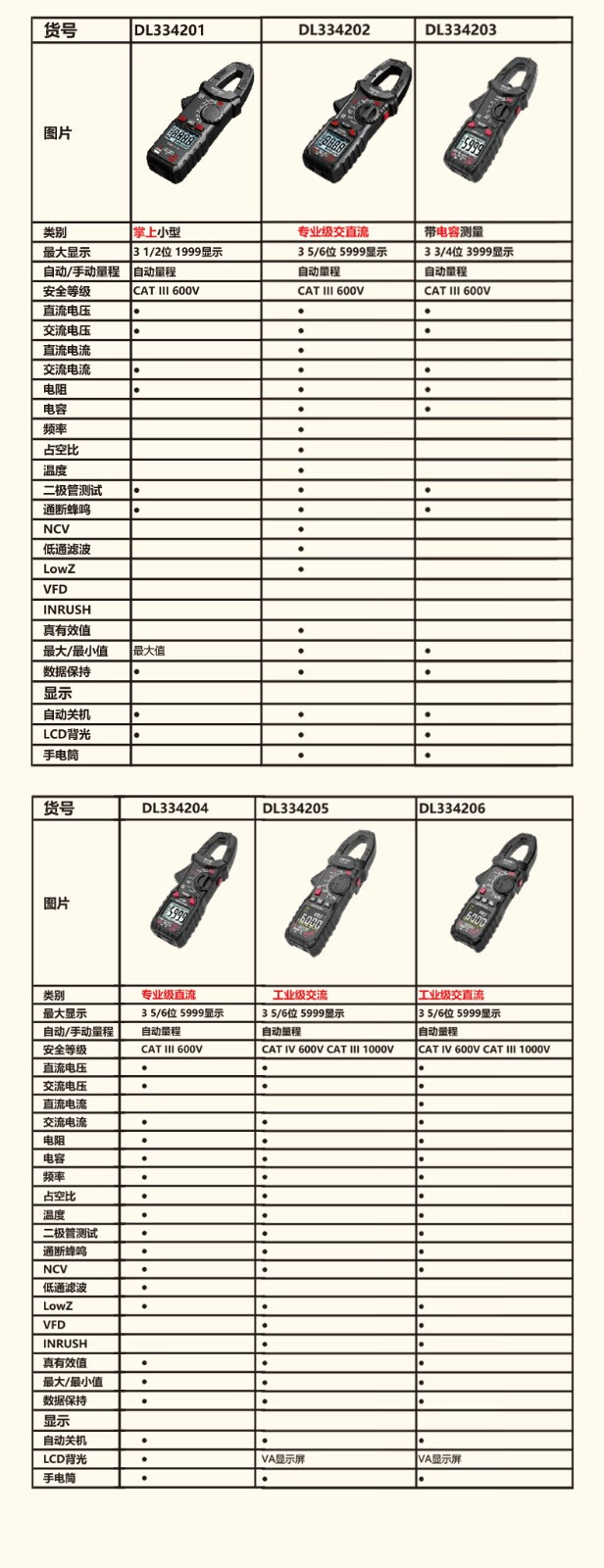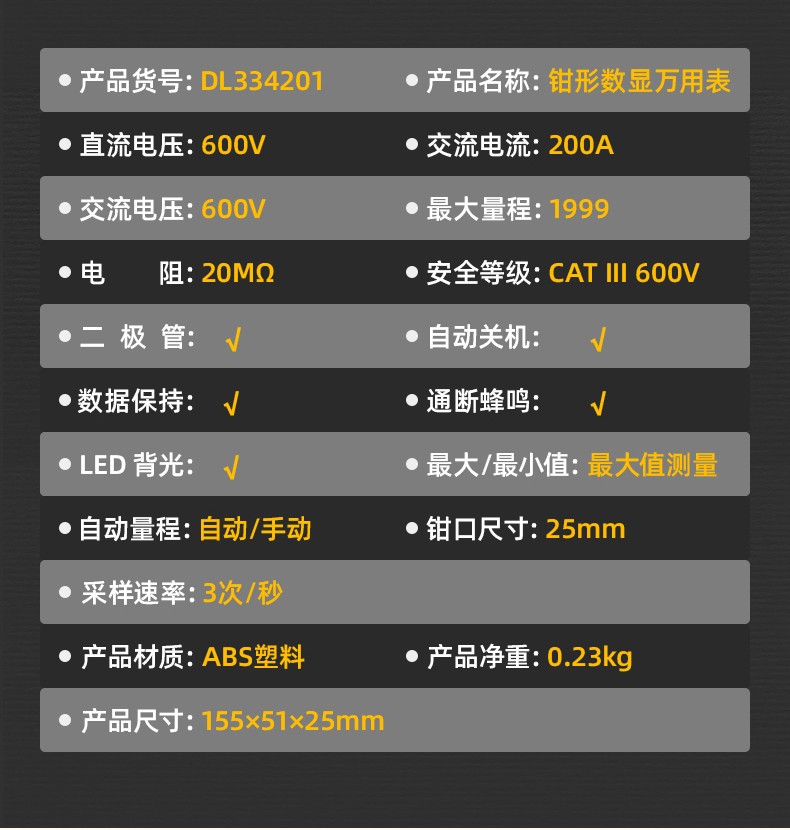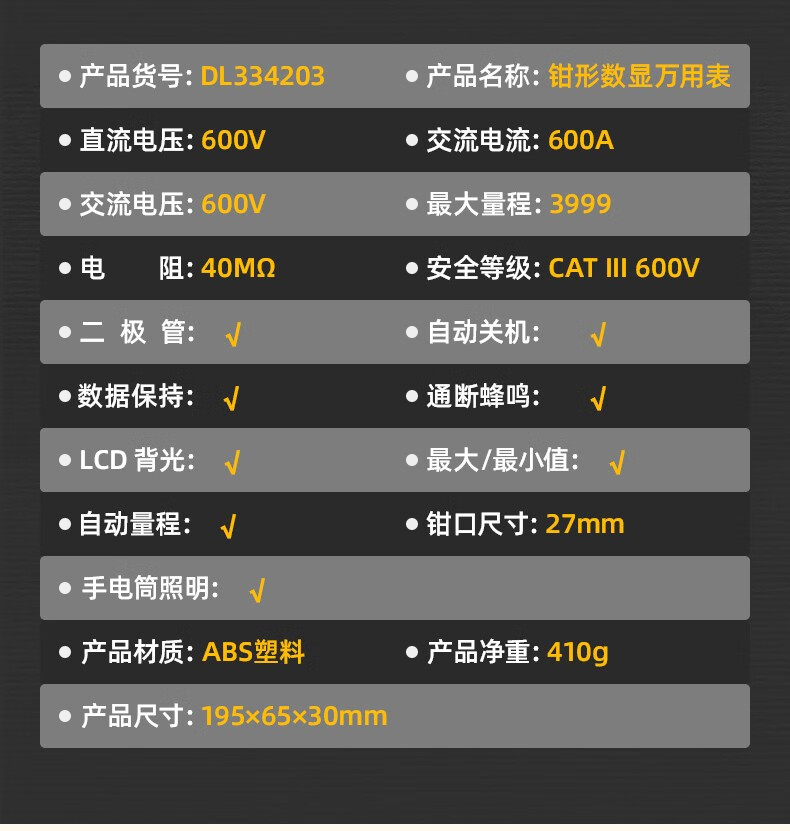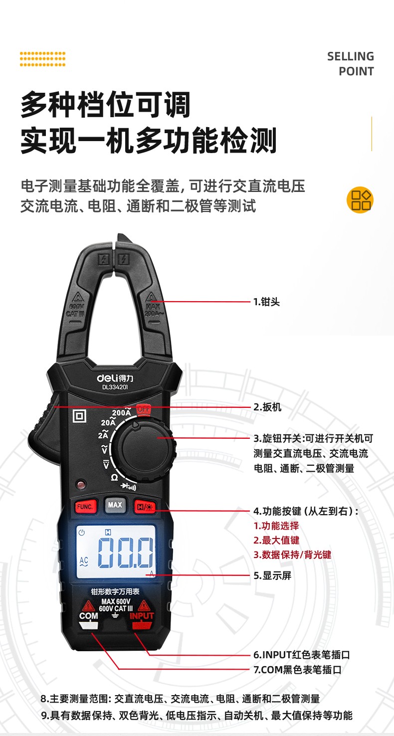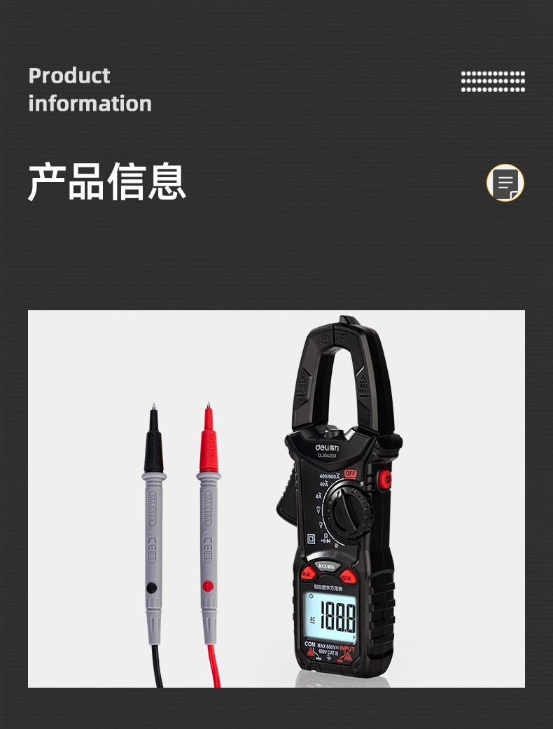 得力 钳形万用表 DL334203 3999位 电容测试 1台
