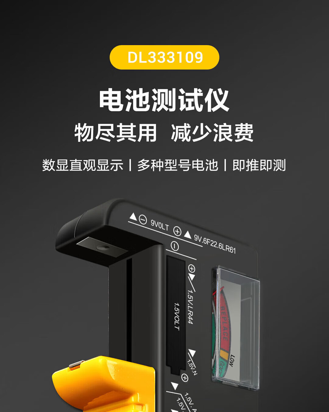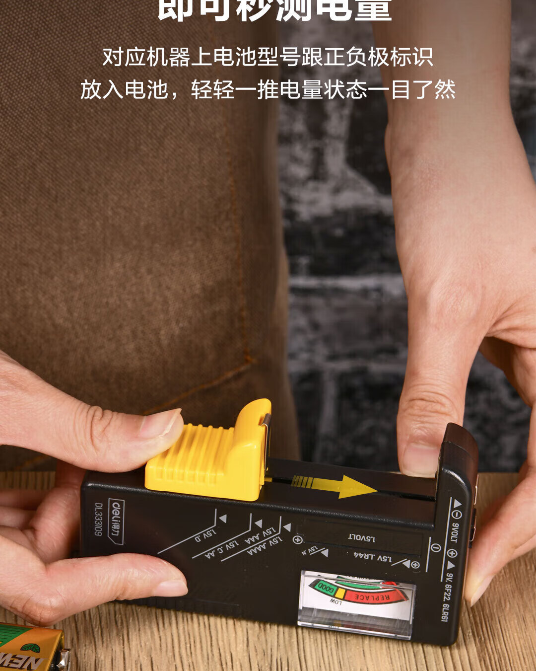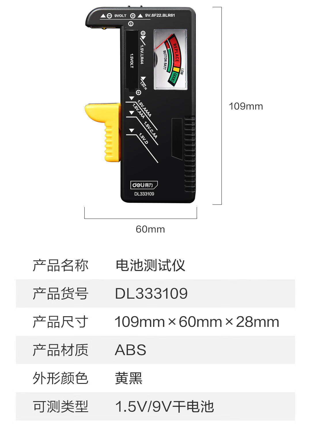 得力(deli)DL333109 电池测试仪 1.5V/9V机械式 黄色 1个