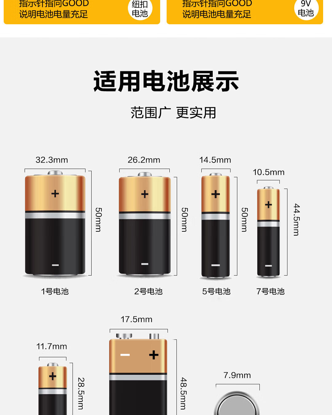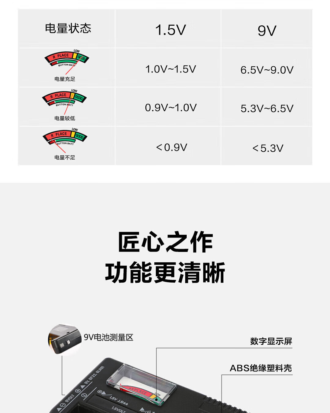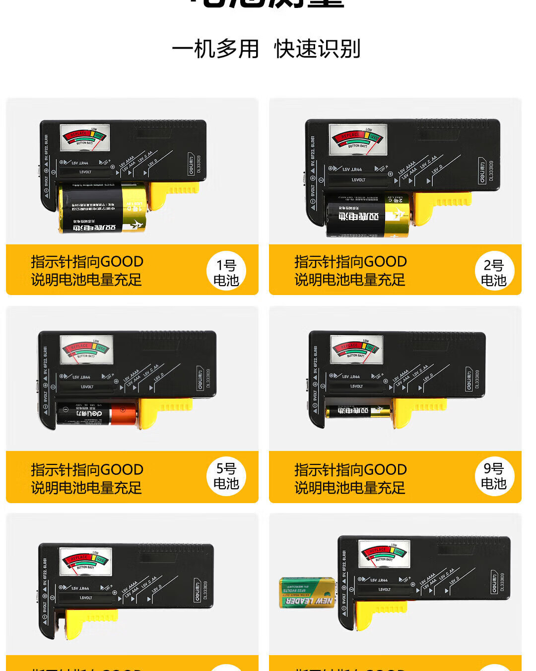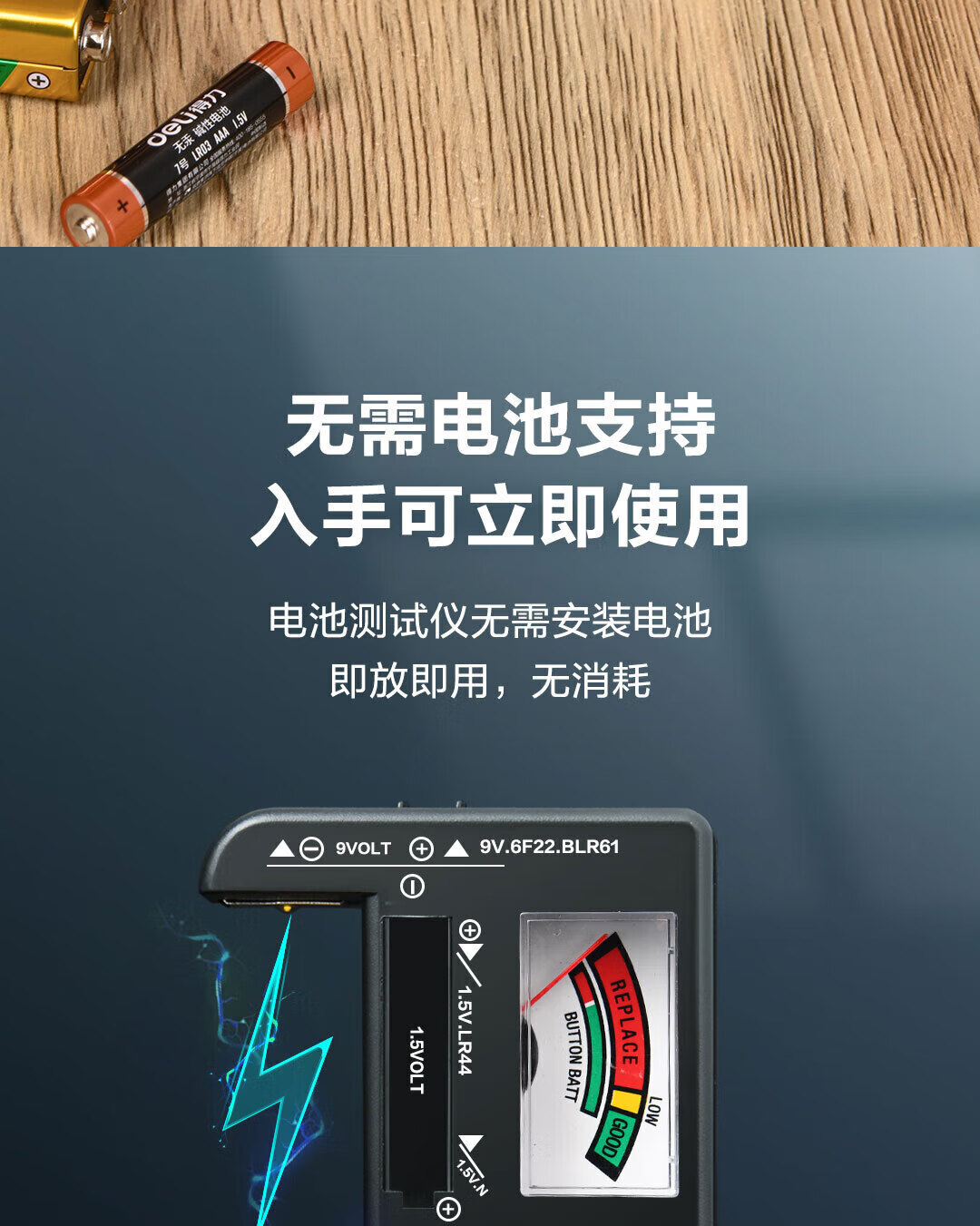 得力(deli)DL333109 电池测试仪 1.5V/9V机械式 黄色 1个