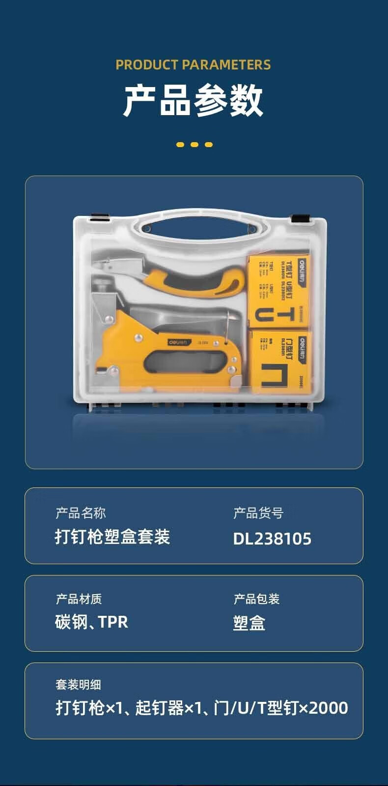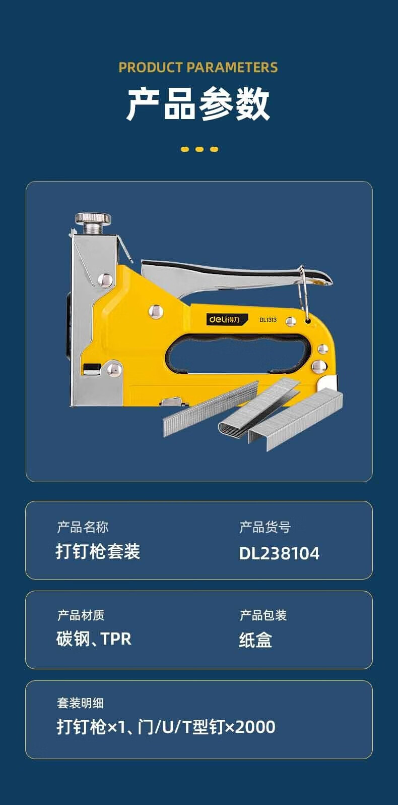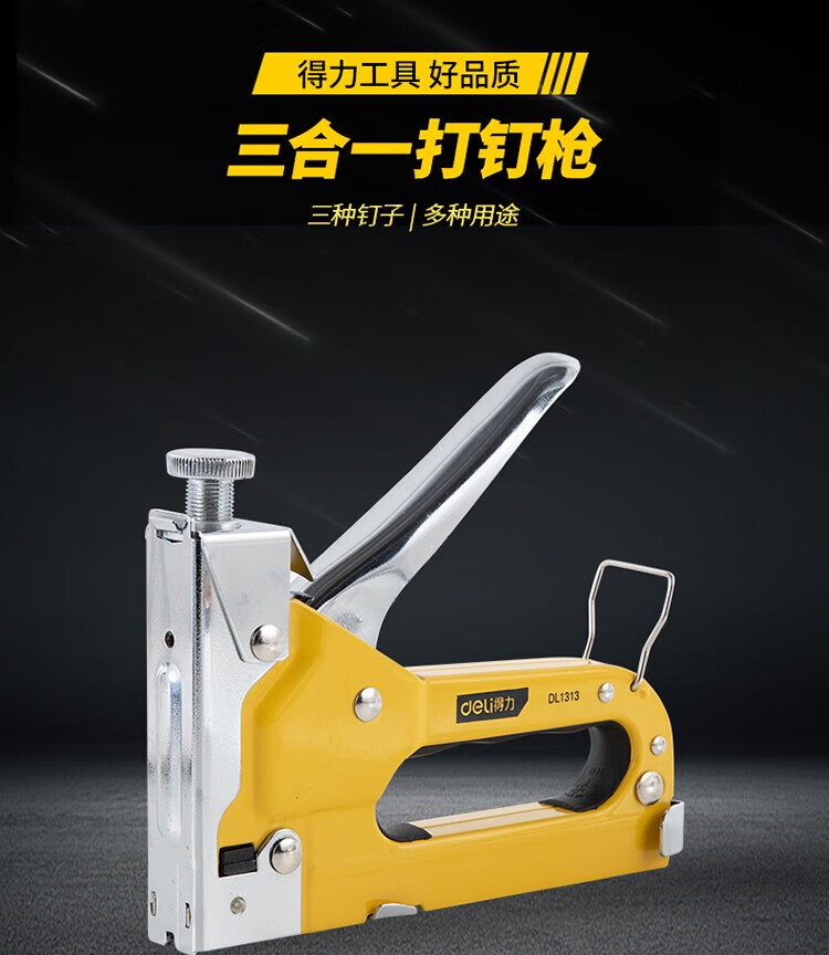 得力 三合一打钉枪套装 DL238104 黄色 三款枪钉各2000枚 1套
