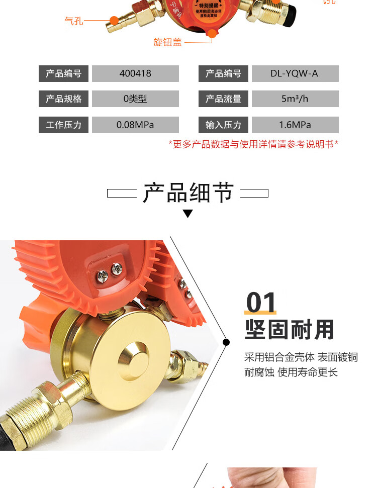 得力 丙烷减压器 DL-YQW-A 0类型 红色 1只