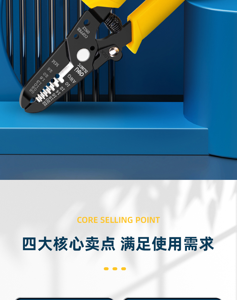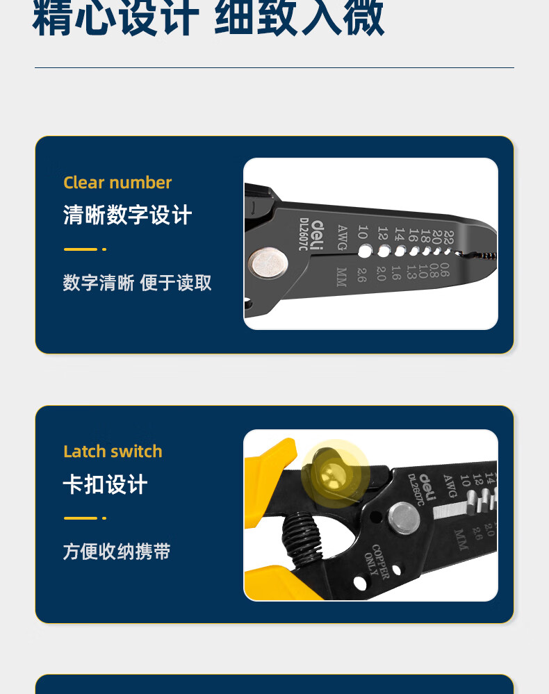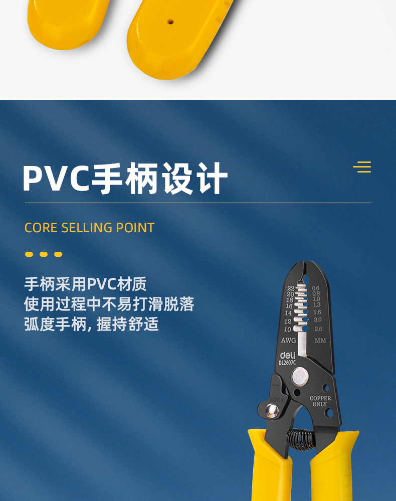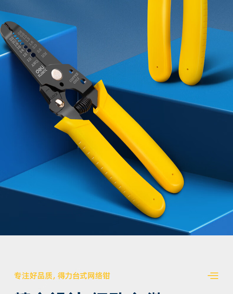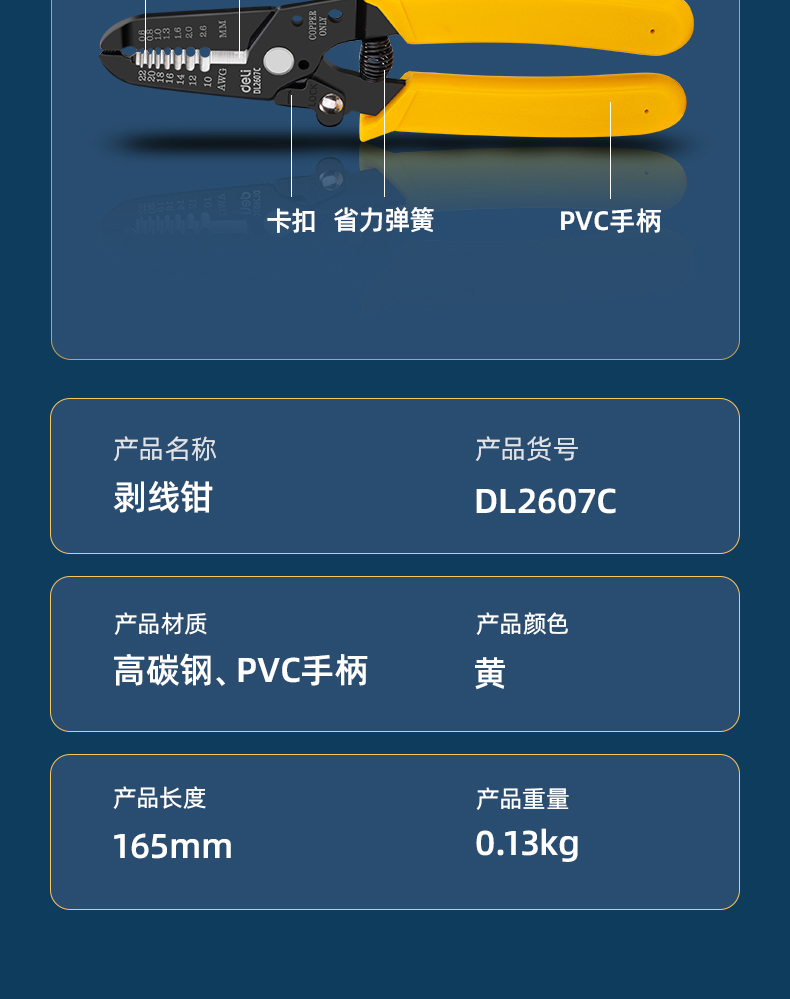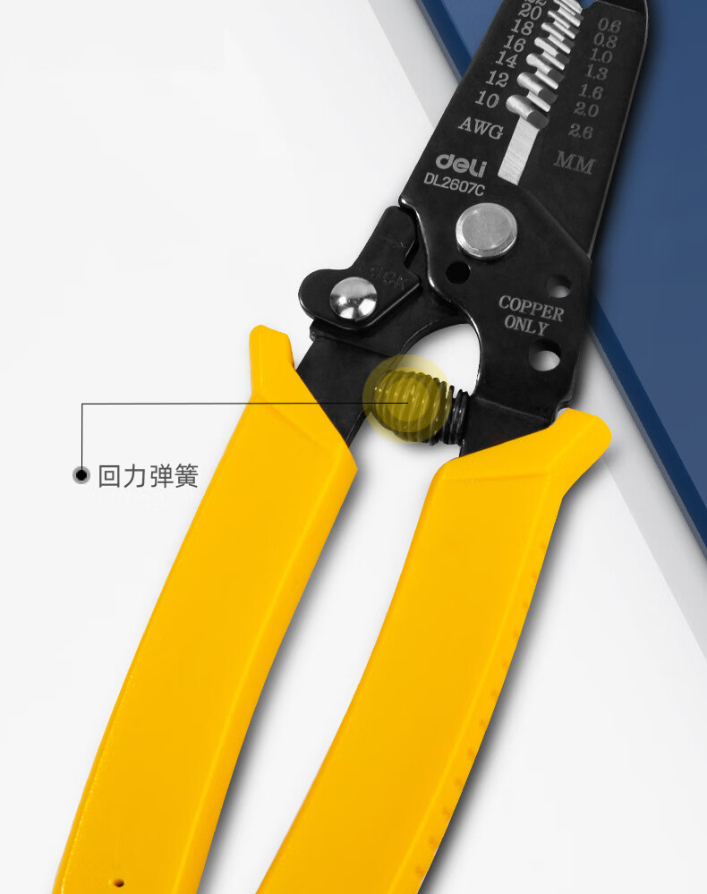 得力 剥线钳 DL2607C 黄色 0.6-2.6mm 1把