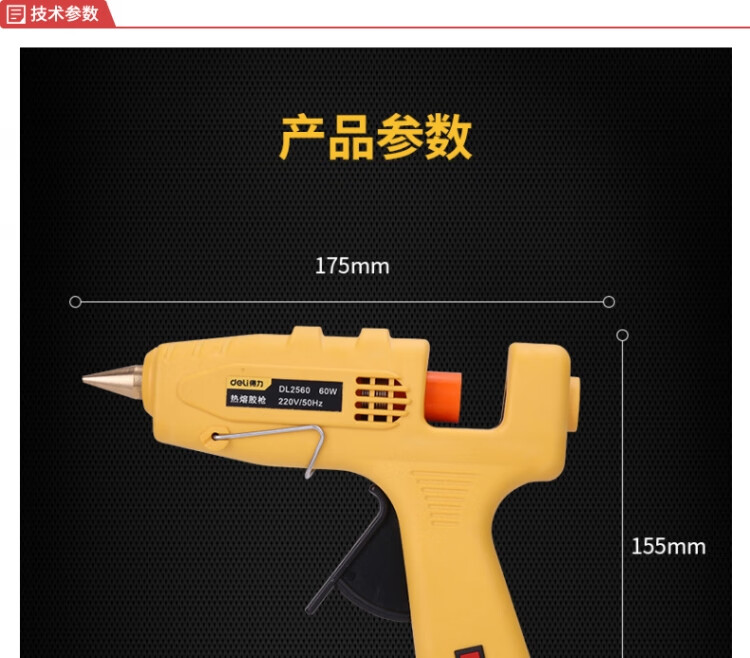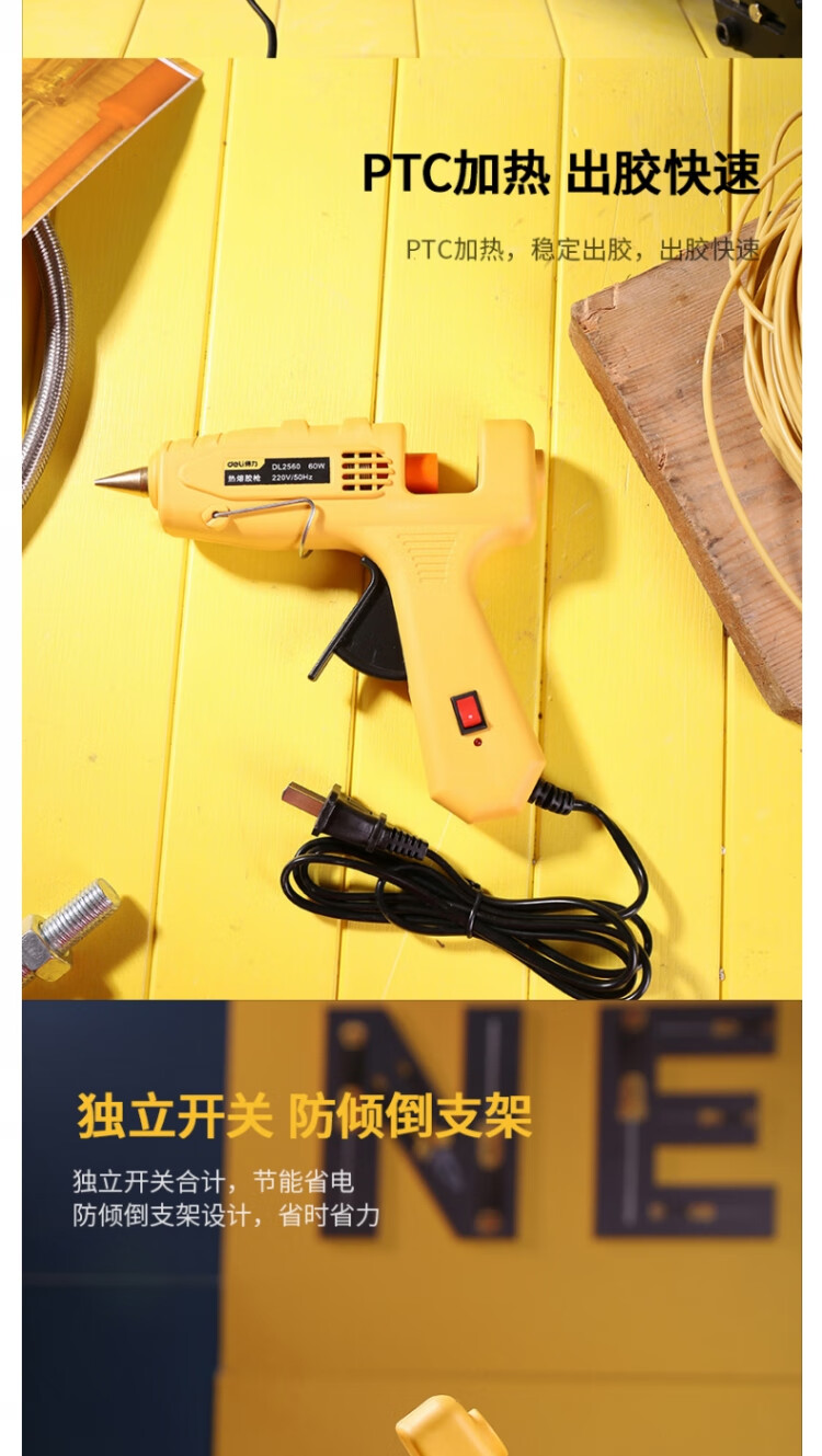 得力 热熔胶枪 DL2560 黄色 铜口 60W 1把