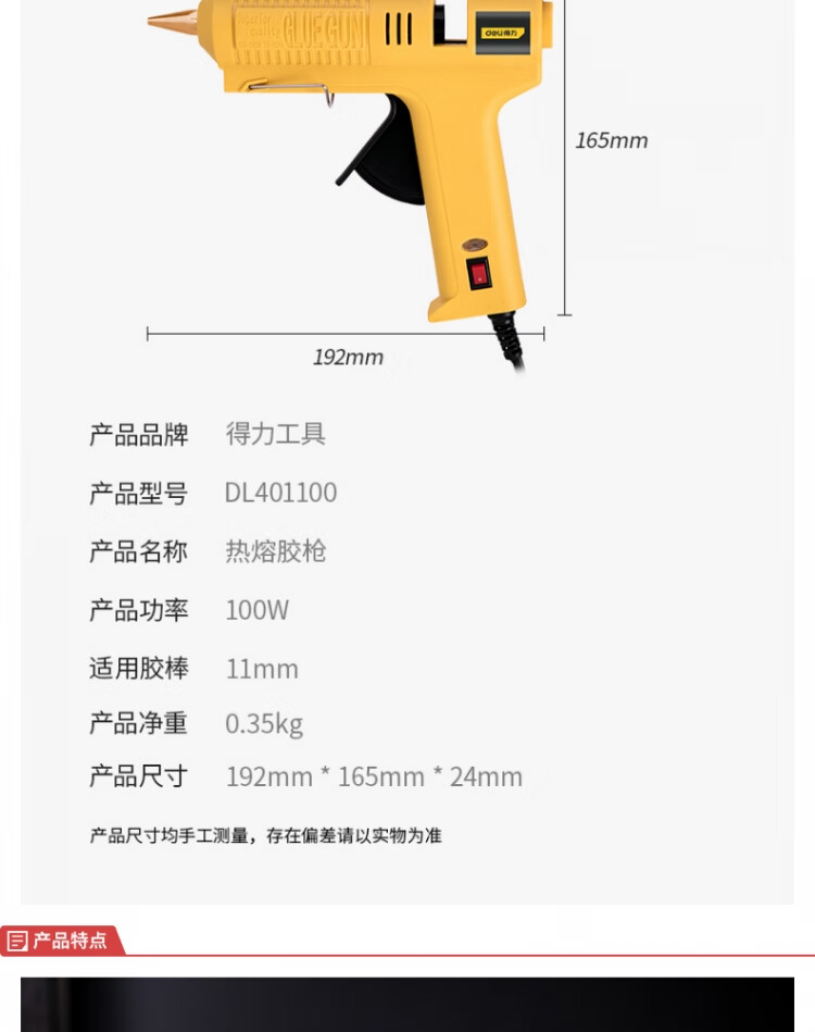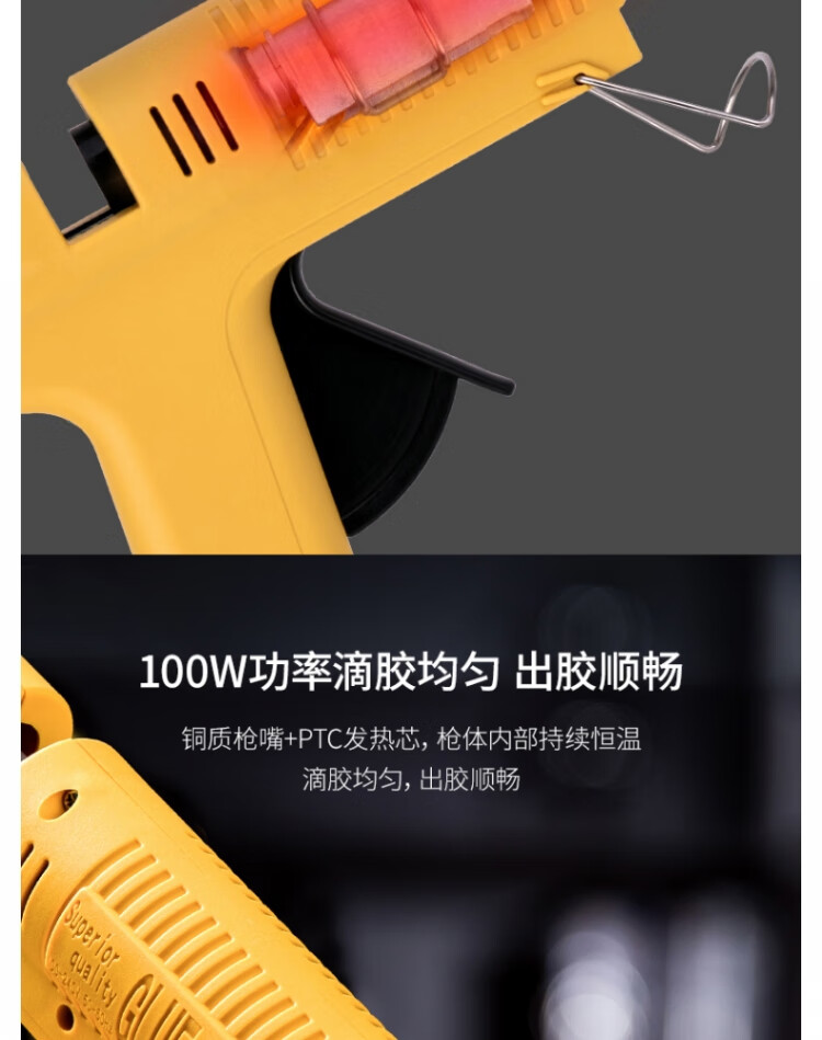 得力 热熔胶枪 DL401100 黄色 铜口 100W 1把