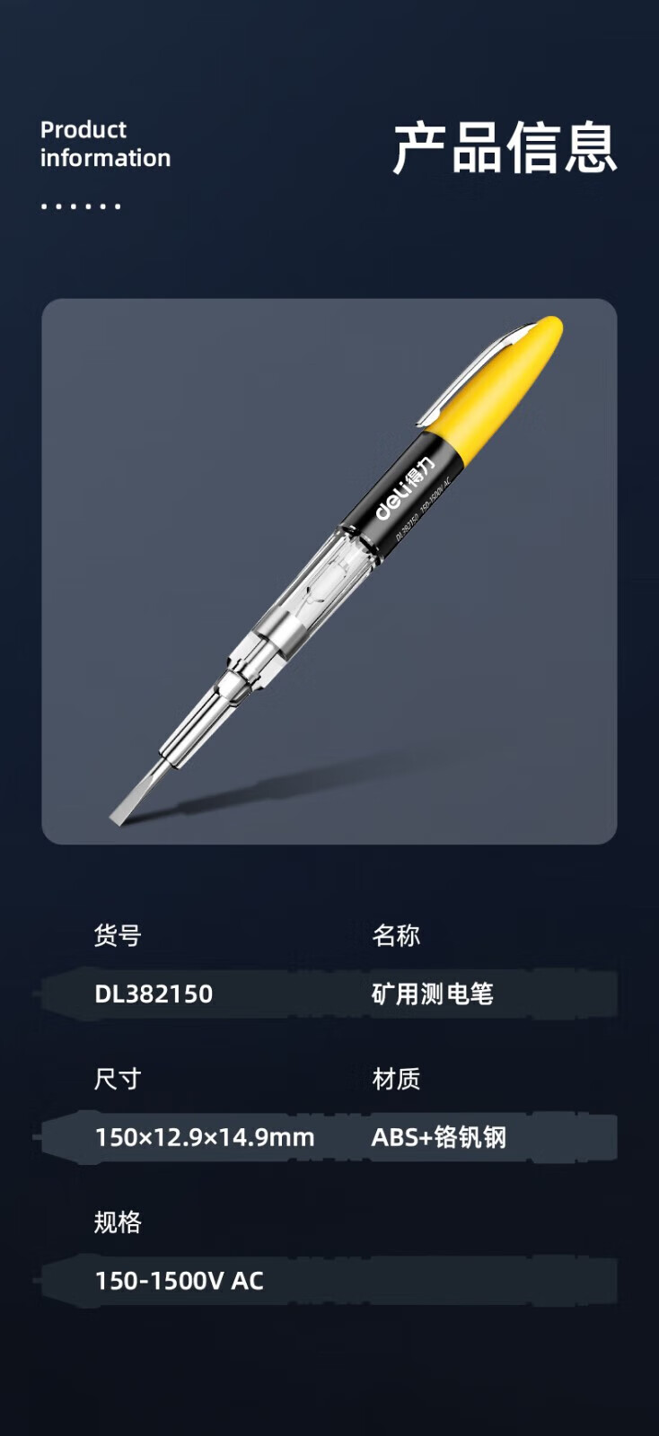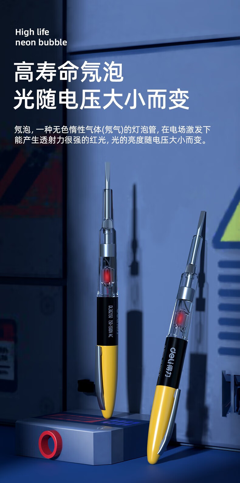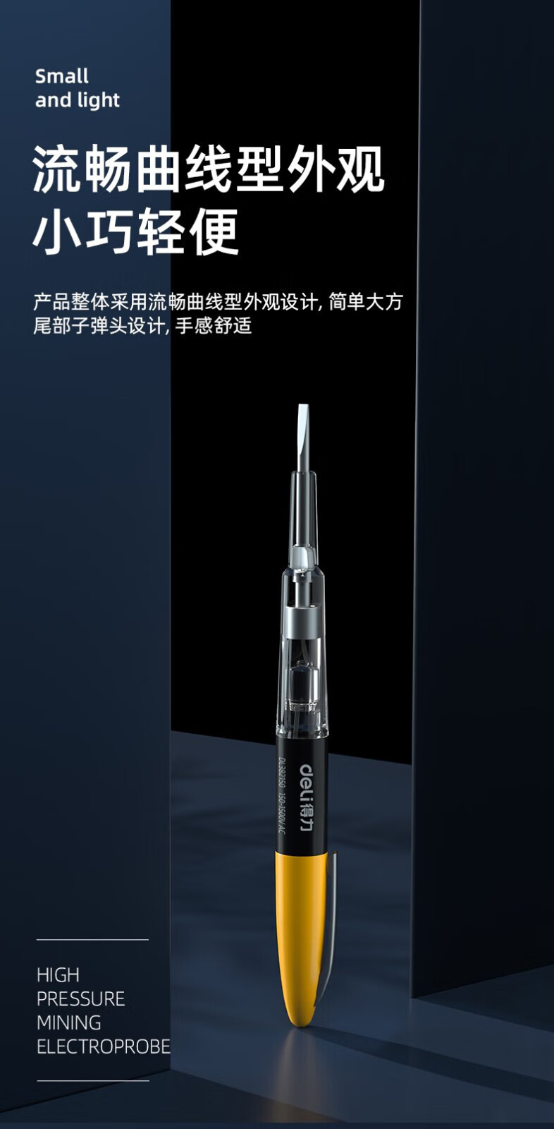 得力 测电笔 DL382150 黄色 AC矿用 150-1500V 1支