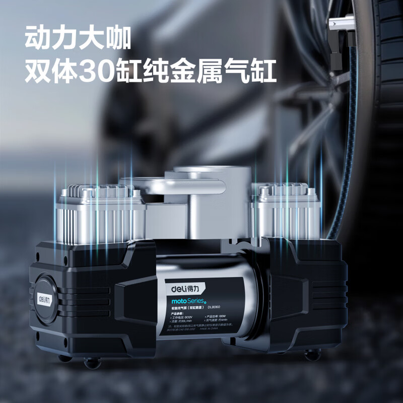 得力 坦克双缸充气泵 DL-TK-A3S 180W 30mm合金缸体 1台