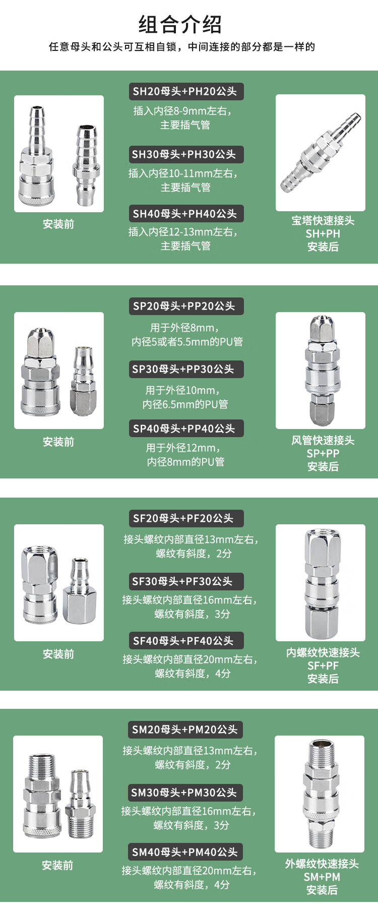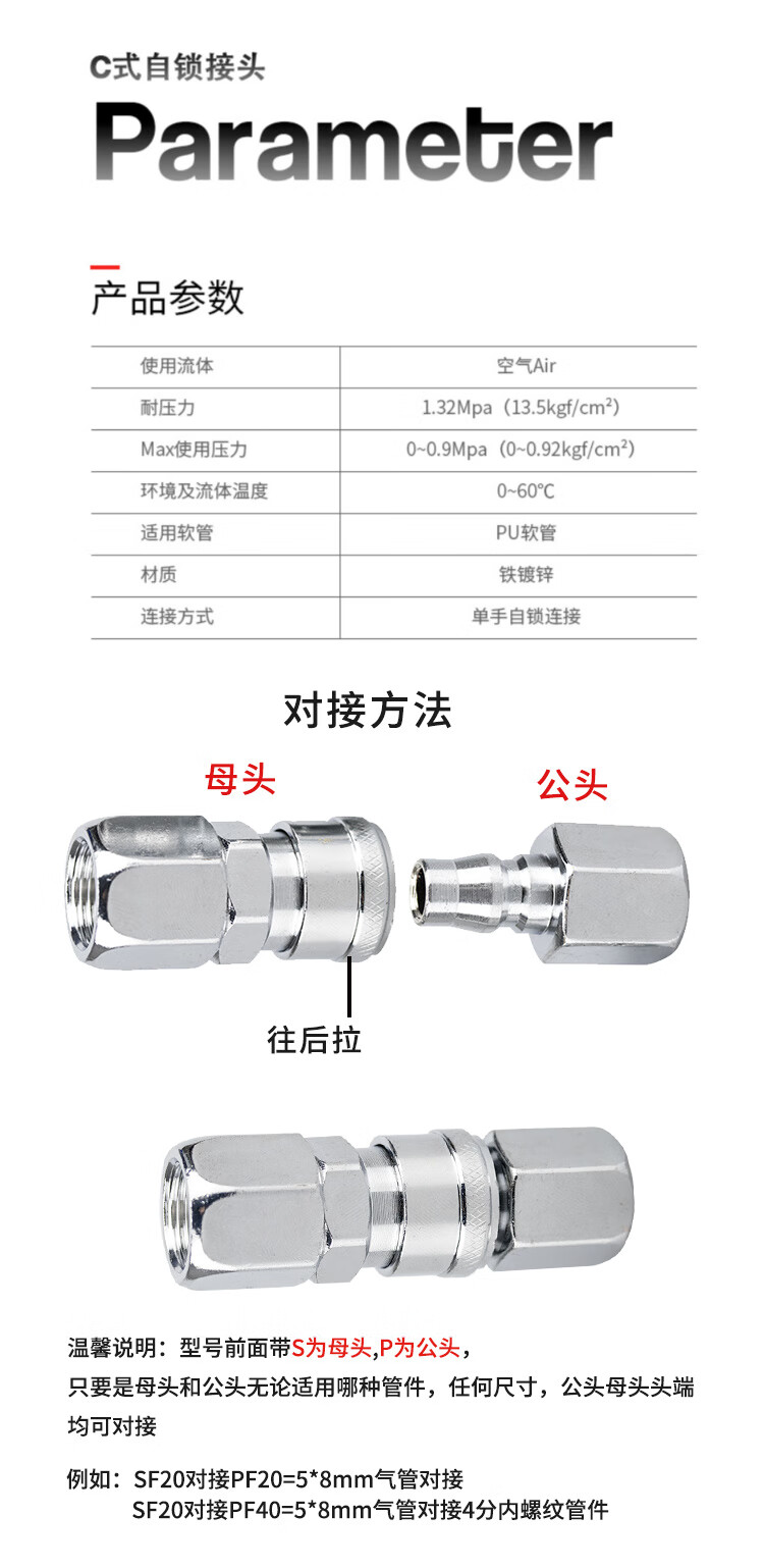 菲尼泰科 C式快速接头 FT-010 PH40 公头 外径13接16*12气管 1个