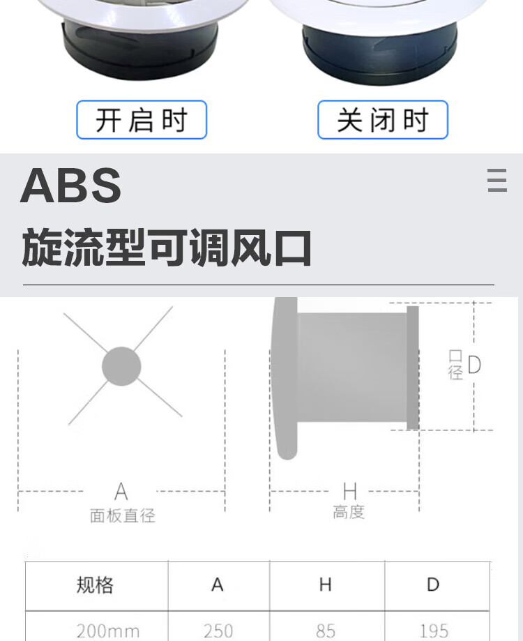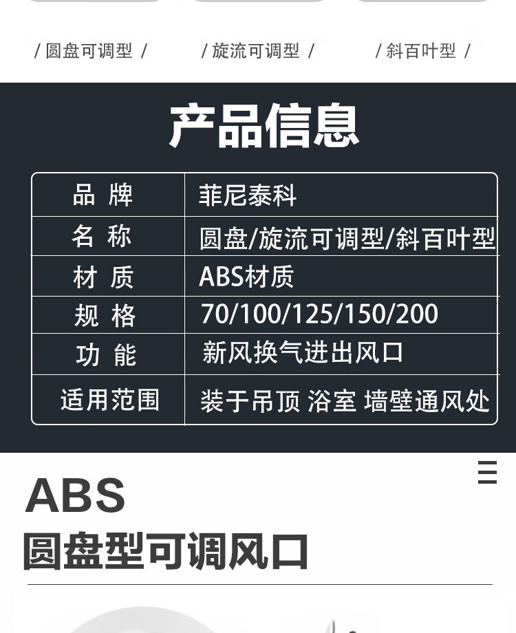 菲尼泰科 ABS新风风口 FT-096 旋流可调型 φ200mm 1个
