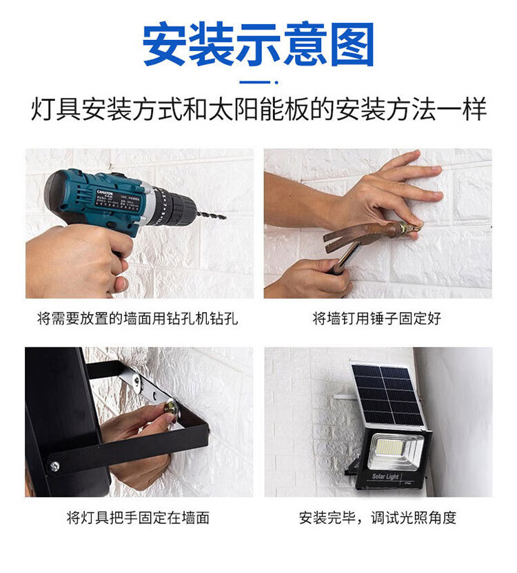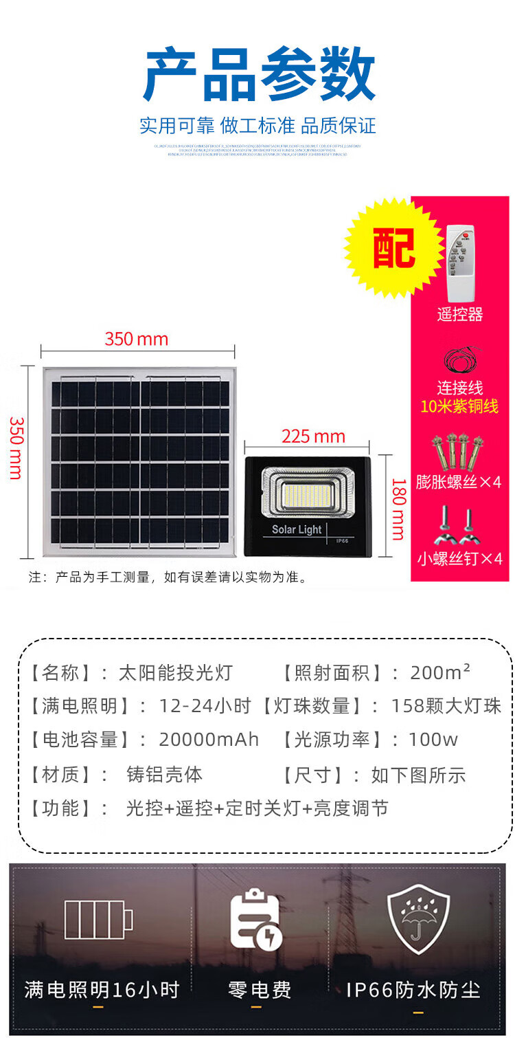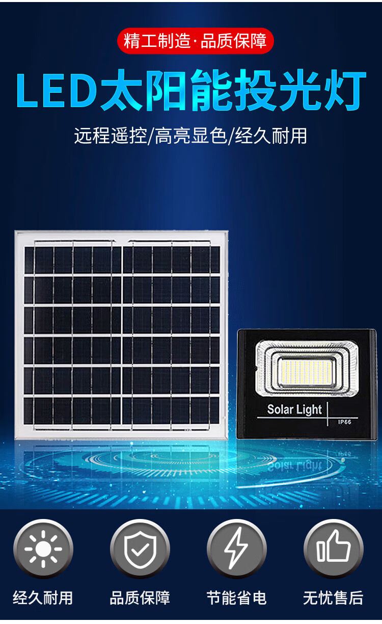 菲尼泰科 LED太阳能投光灯 FT-123 100W-158珠+智能光控+遥控+10米铜线 1套