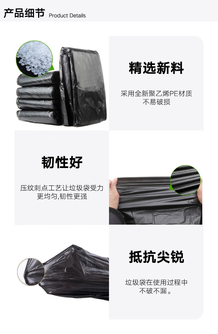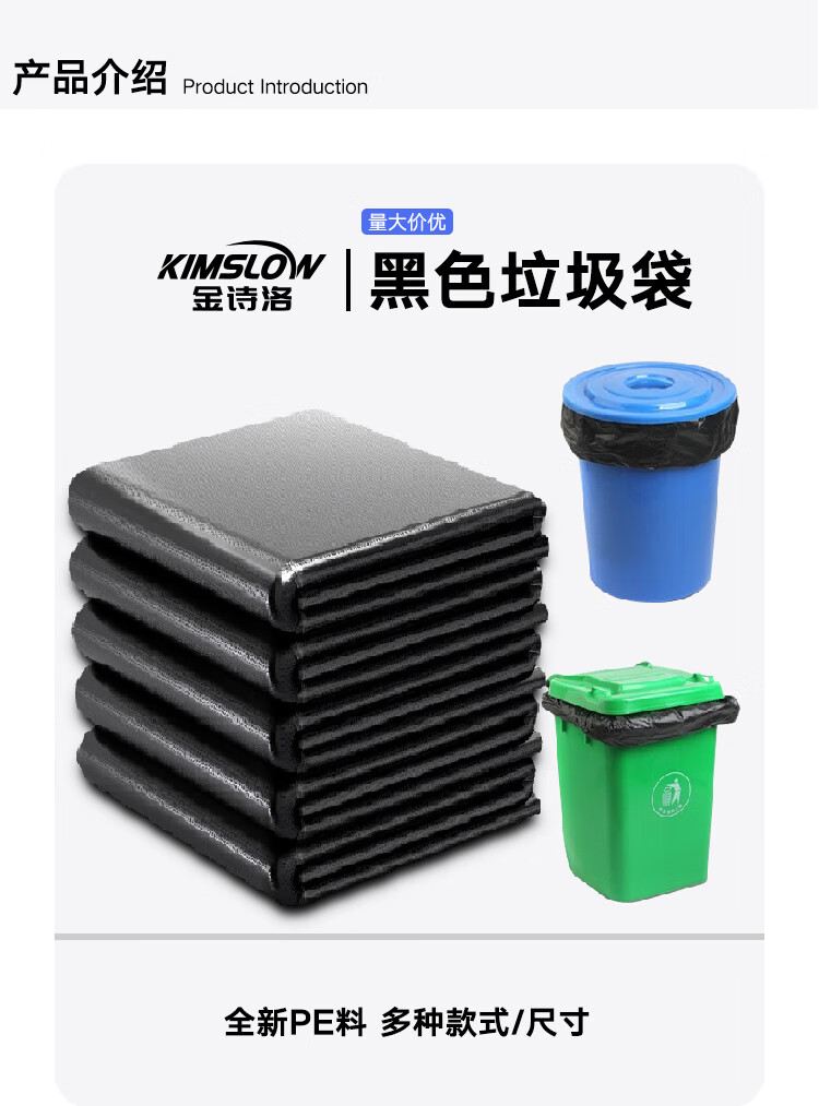 金诗洛 加厚黑色垃圾袋 KSL130 PE 4丝 平口130*140cm 250只 1件