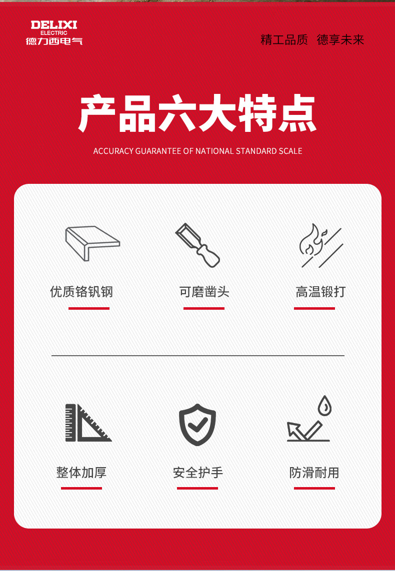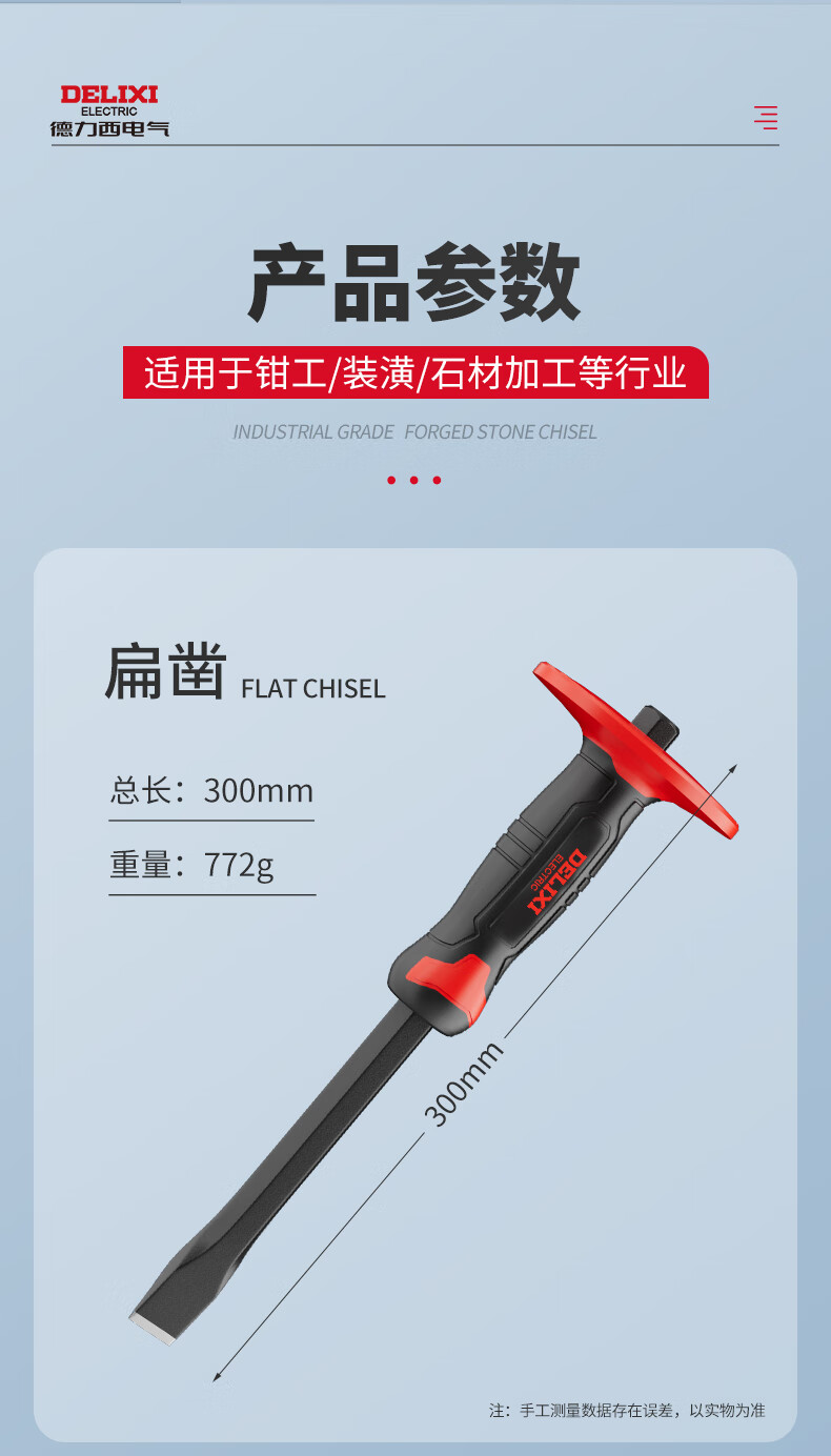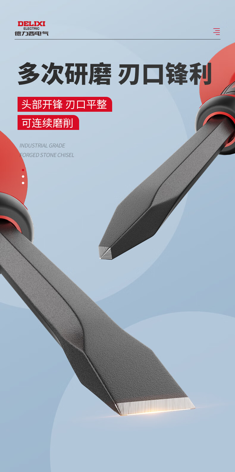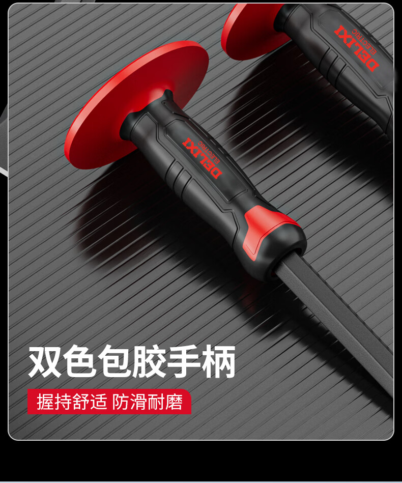 德力西电气 铬钒钢尖头石工凿 12寸扁凿+12寸尖凿+一磅防震八角锤 3把 1套