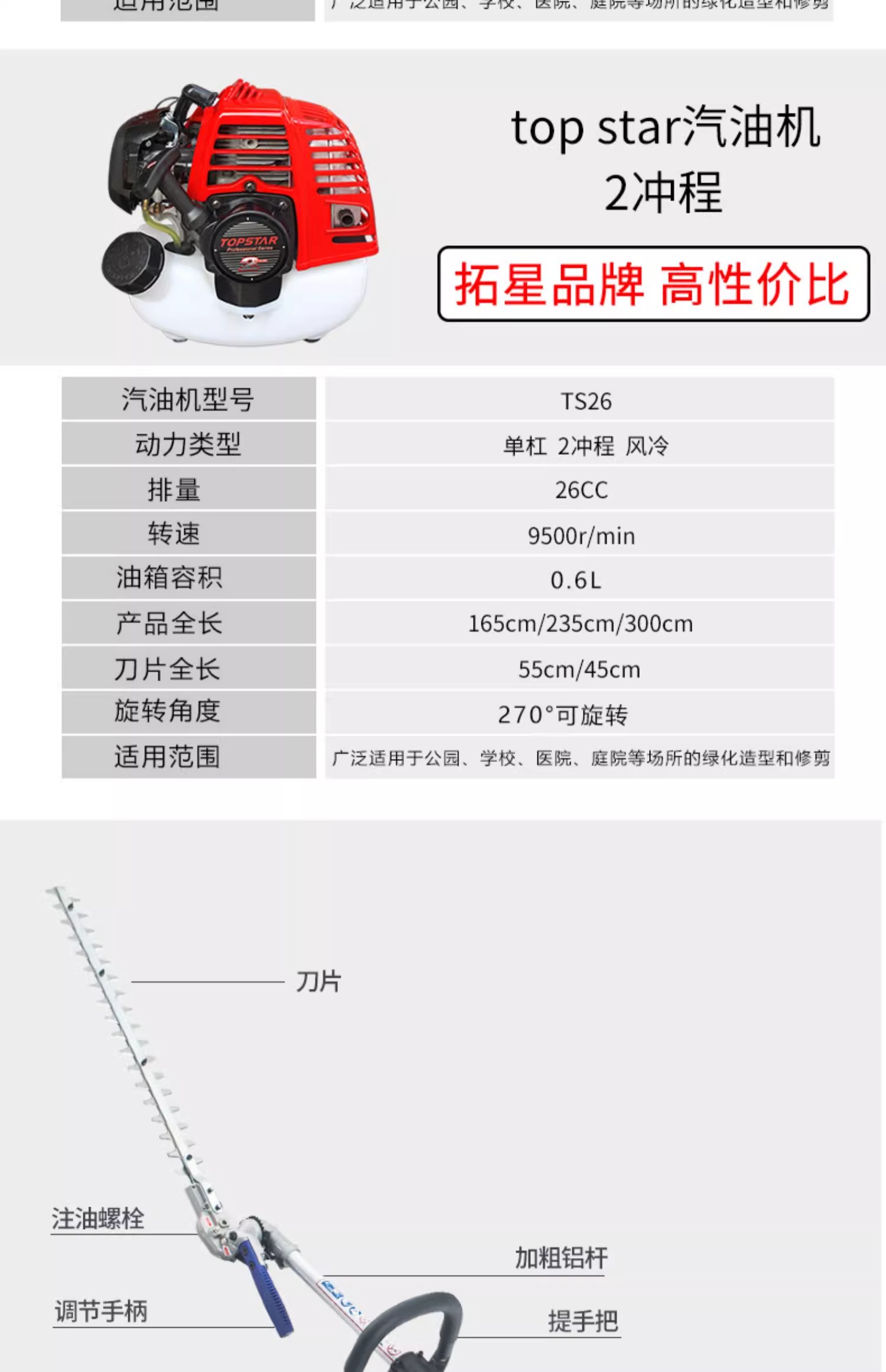 topstar 高枝修剪机 TU26 单杠 2冲程 风冷 235cm 1台