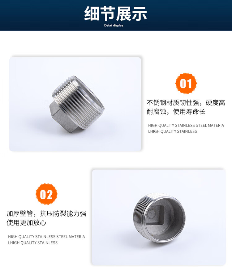 稳斯坦 外丝堵头 WT-121 304不锈钢 DN40-1 1/2 1个