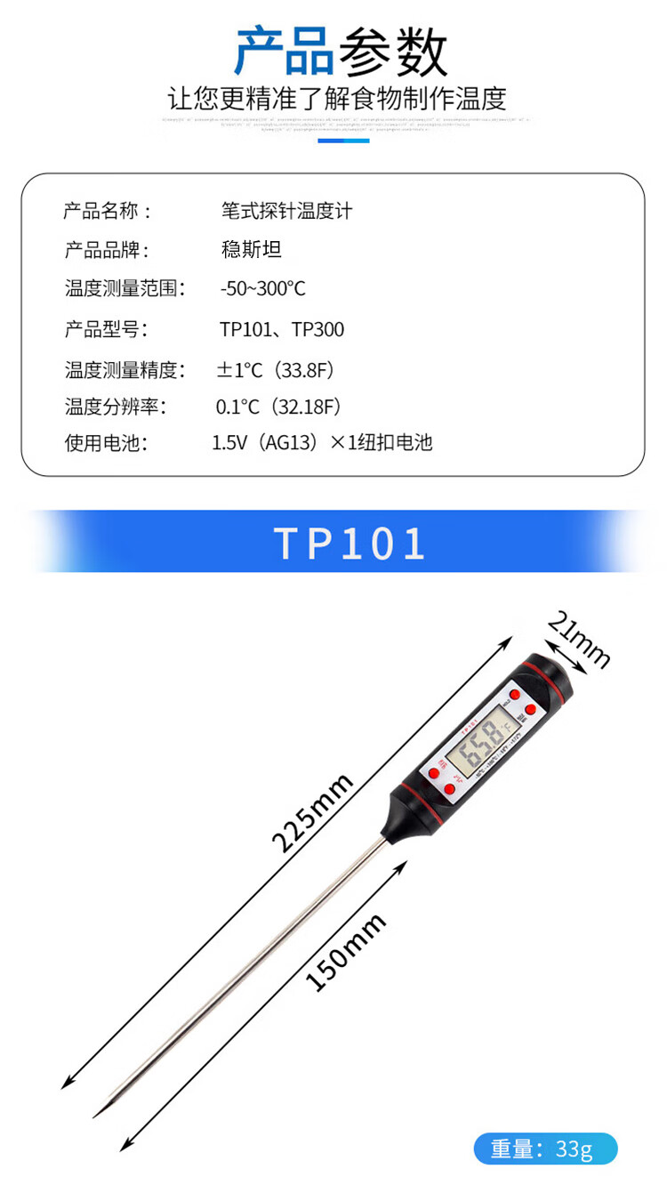 稳斯坦 直插探针式电子温度计 WLL0098 TP300 3支 1件