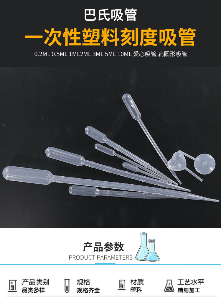 稳斯坦 一次性塑料刻度吸管 WLL0027 10ml 100个 1件