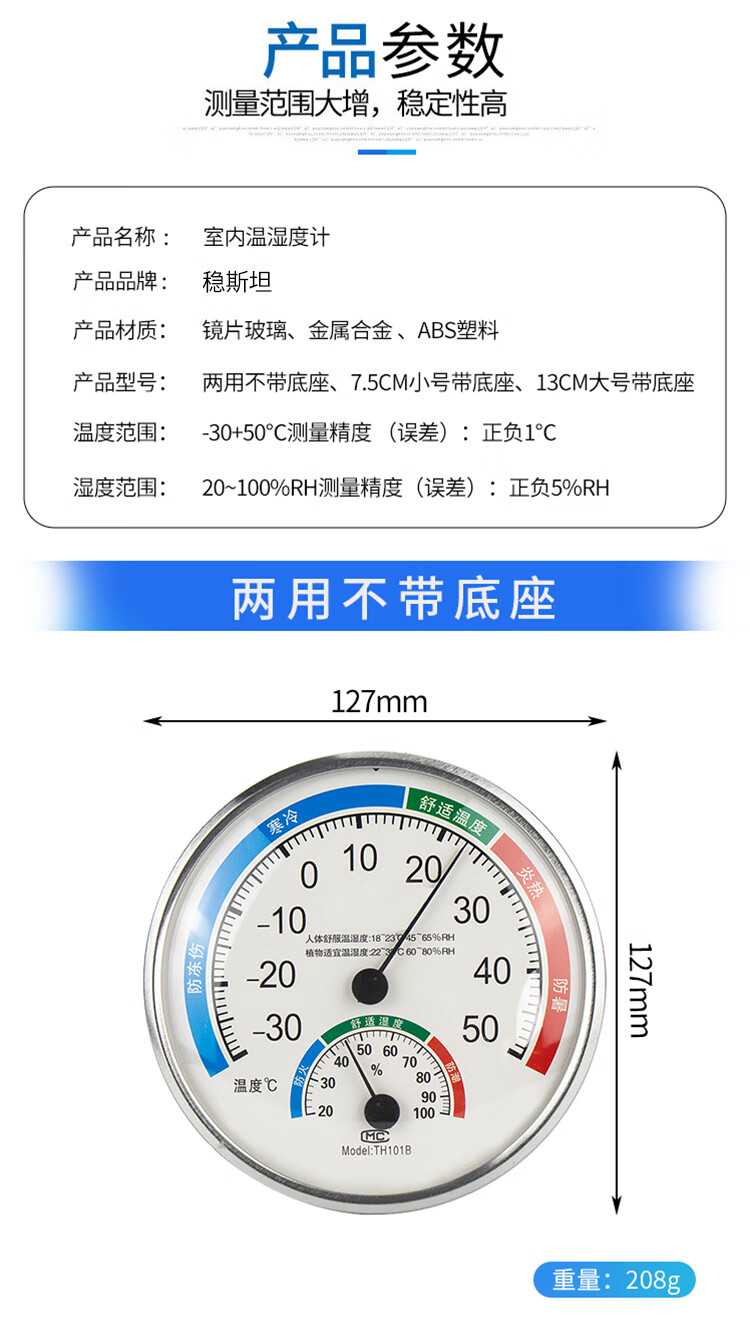 稳斯坦 圆形指针式温度计 WLL0156 7.5cm小号带底座 1个