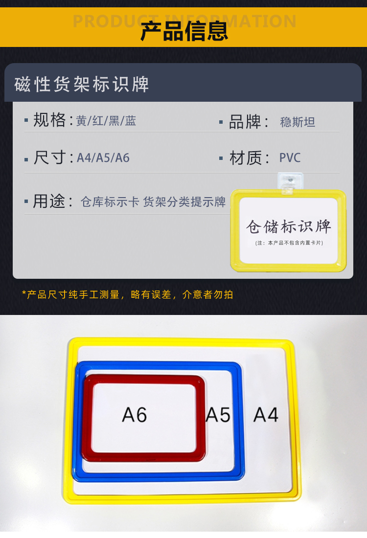 稳斯坦 磁性货架标识牌 WST300 A4 302*215mm 双磁座 蓝色 1个